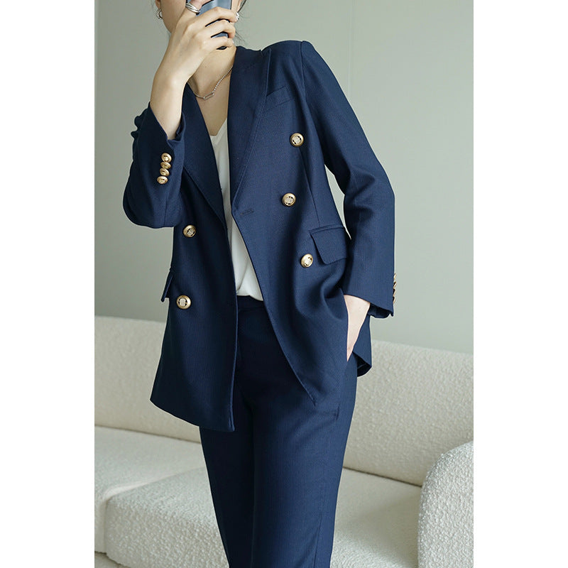 Denne eksklusive jakkesæt fra Stilla er det perfekte valg for moderne kvinder, der ønsker at efterlade et varigt indtryk både i arbejdslivet og i fritiden. Sættet fremhæver en yderst flatterende silhuet takket være sin skræddersyede pasform.