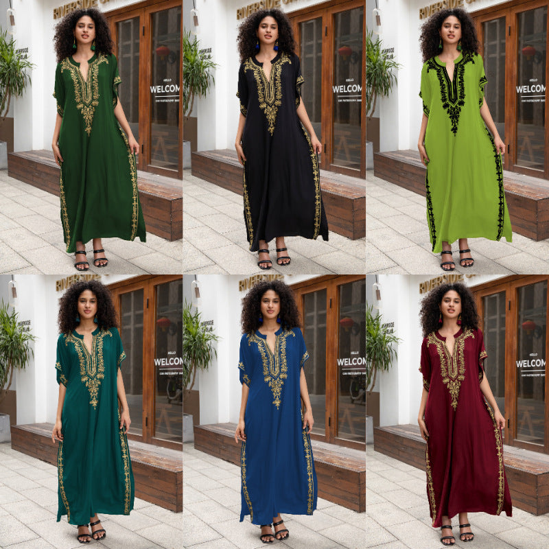 Opdag vores elegante kaftan med kunstneriske broderidetaljer, perfekt til stilfulde optrædener eller afslappede dage på stranden. Denne dames-kaftan kendetegnes ved sit luksuriøse design og den charmerende kombination af traditionelle og moderne elementer.