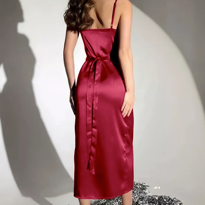 Opdag den udsøgte dameskjorte med et højt slids og en skinnende finish, der begejstrer. Denne kjole kombinerer elegant stil med et moderne touch og er perfekt til særlige lejligheder.