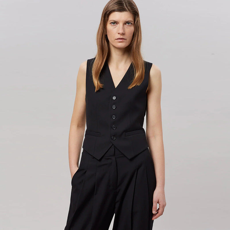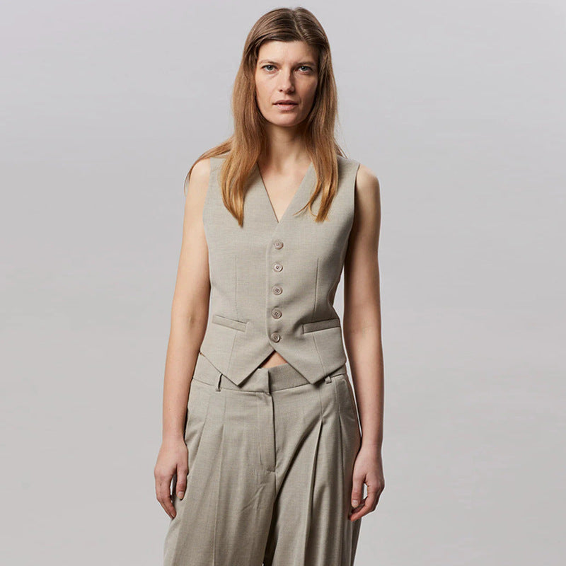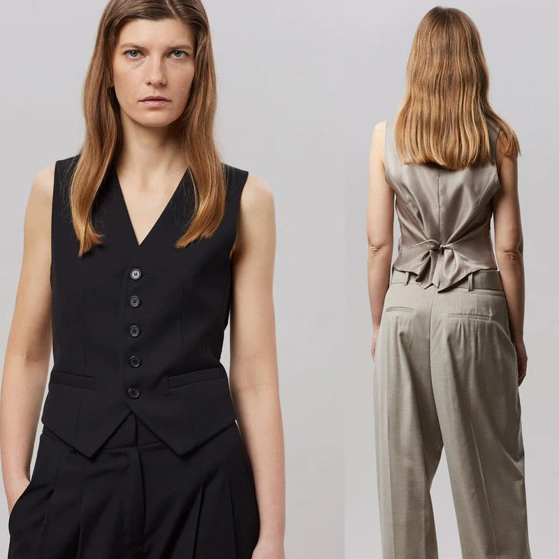 Udforsk den tidløse elegance af vores damers elegante figursyede vest med knapdetaljer og slank pasform fra Stilla. Denne stilfulde vest er det ideale beklædningsstykke til modebevidste anledninger og giver dig både komfort og klasse.