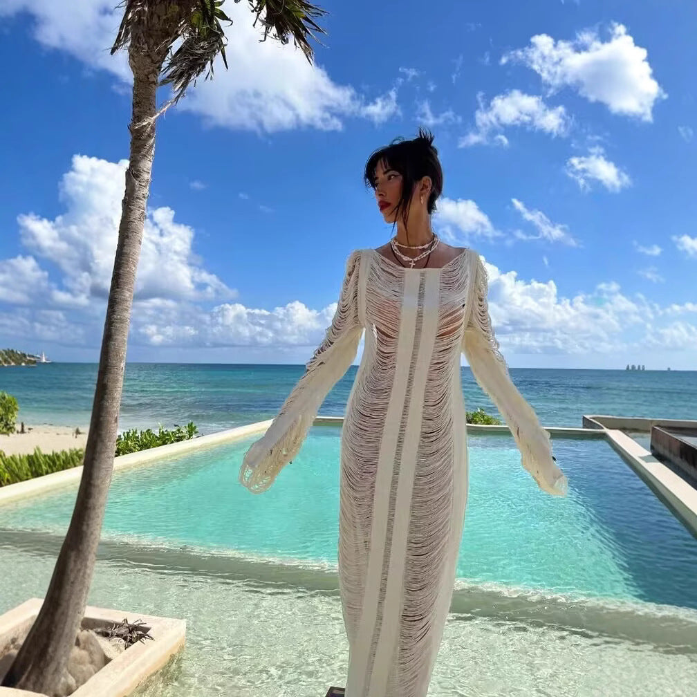 Opdag det perfekte stykke til særlige anledninger: vores elegante gennemsigtige kjole med raffineret flæse-design. Denne kjole forener stil og komfort på unik vis.