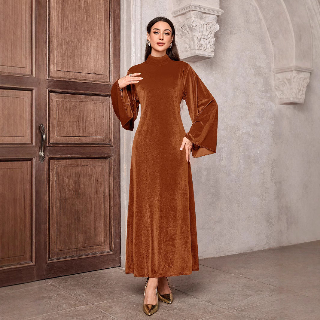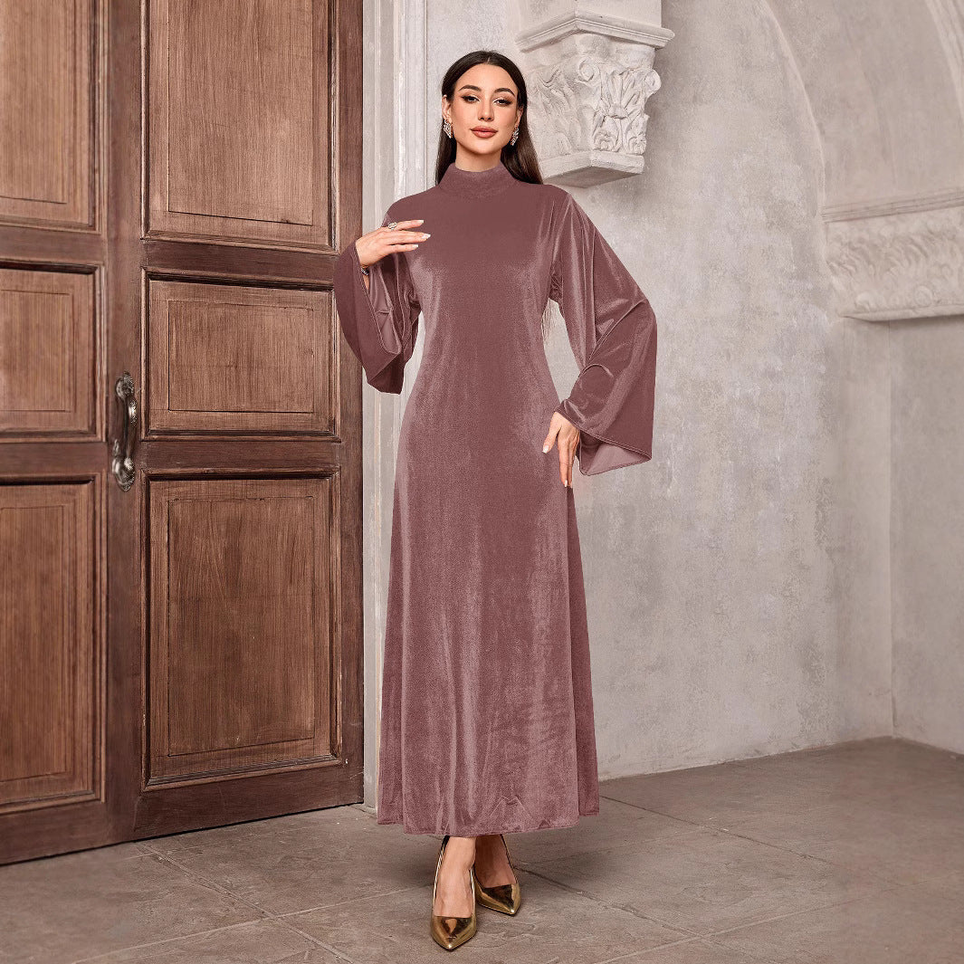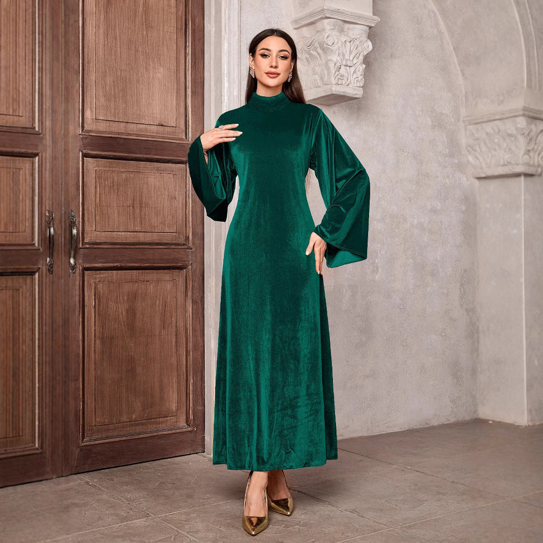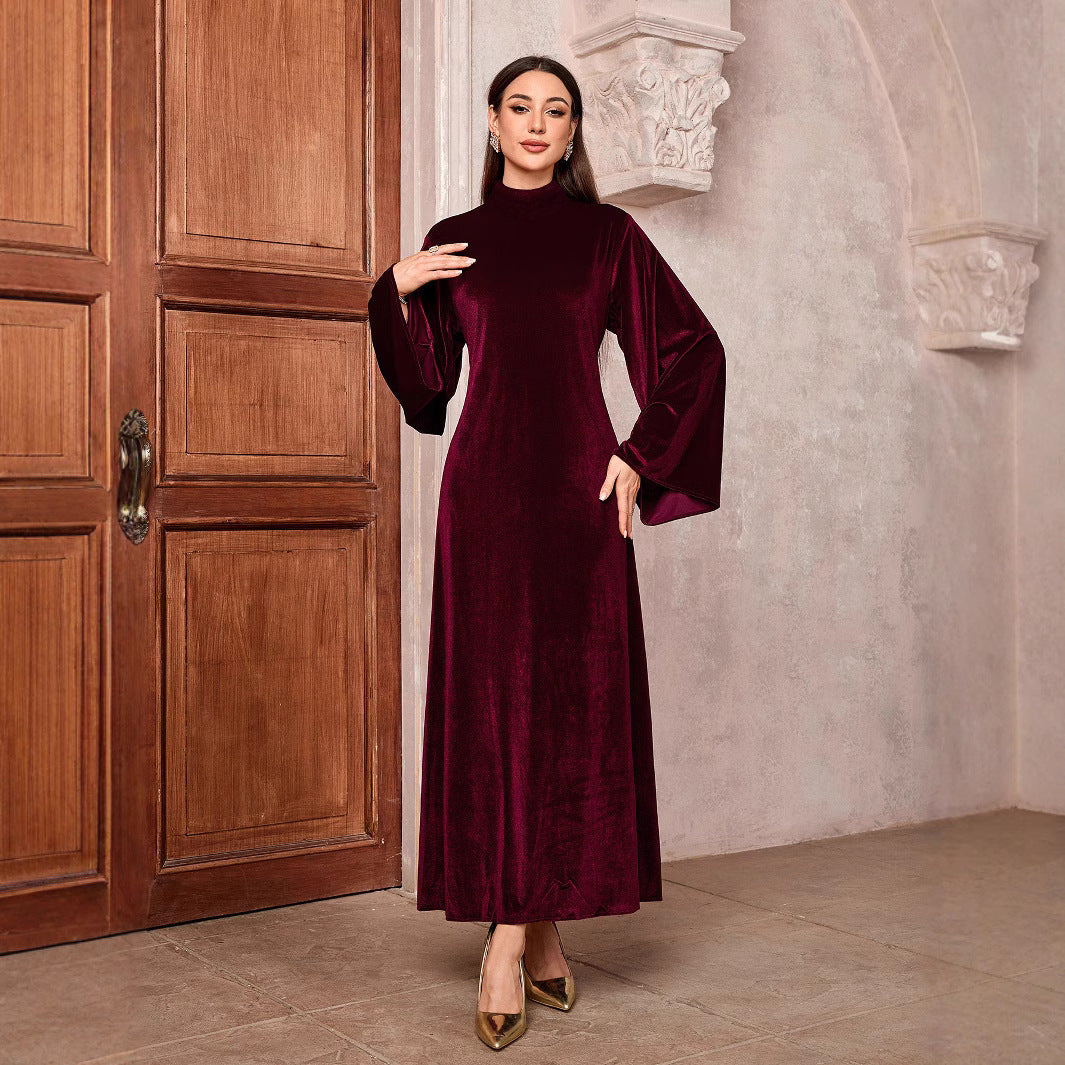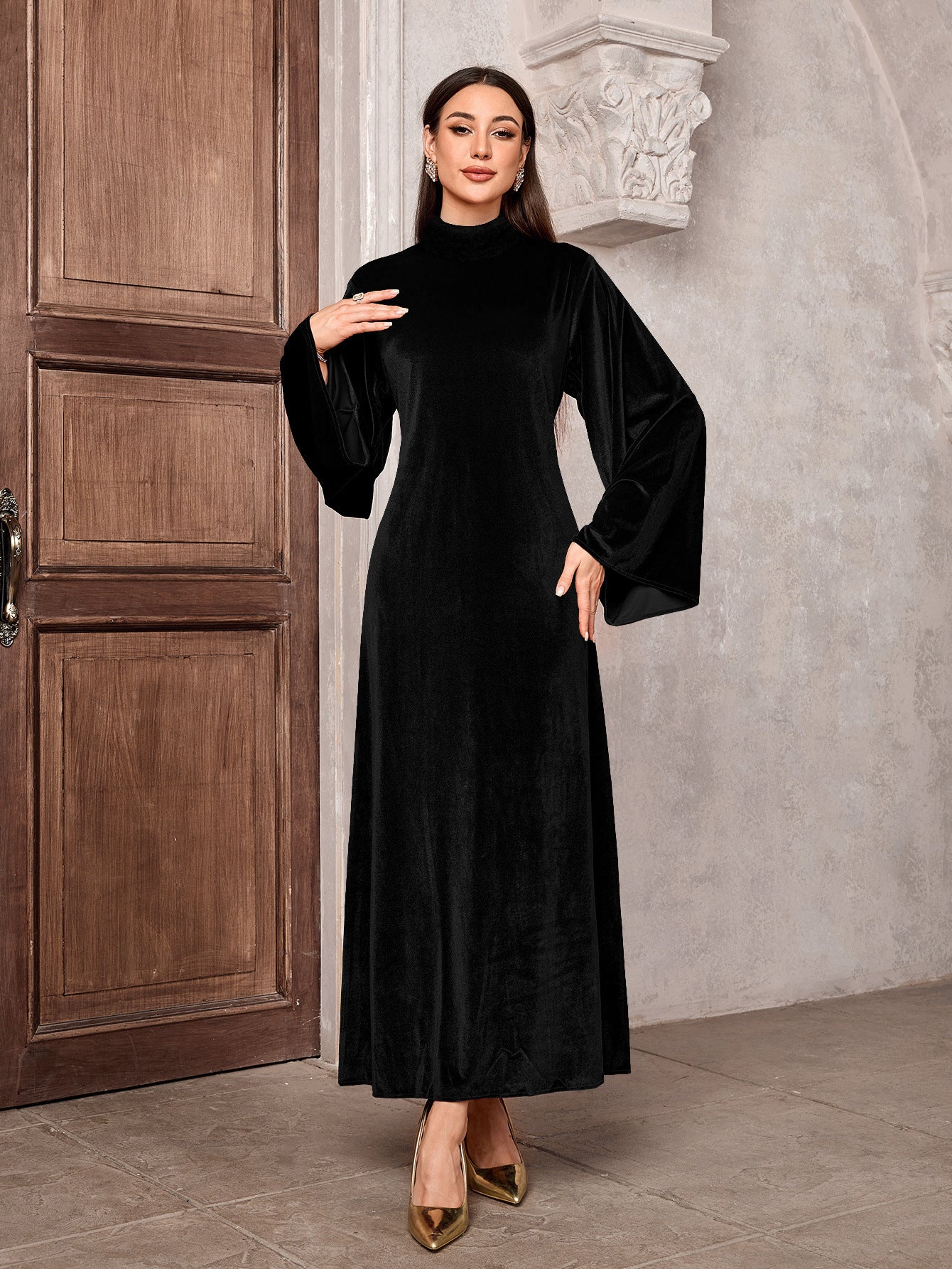 Opdag vores smukke dames maxi kjole lavet af høj kvalitet fløjl, der forener stil og elegance. Denne kjole er den perfekte ledsager til festlige anledninger eller glamourøse aftener.