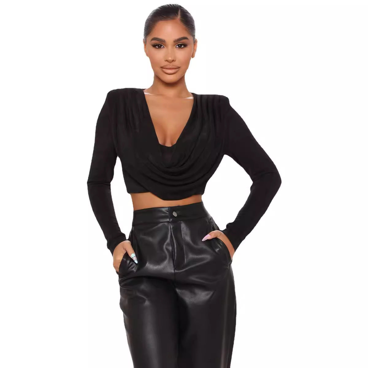 Opdag vores dames elegante indpakningsbluse med lange ærmer og dyb V-hals, der er ideel til fashionable anledninger og daglig brug. Denne bluse kombinerer stil og komfort og får ethvert look til at stråle.