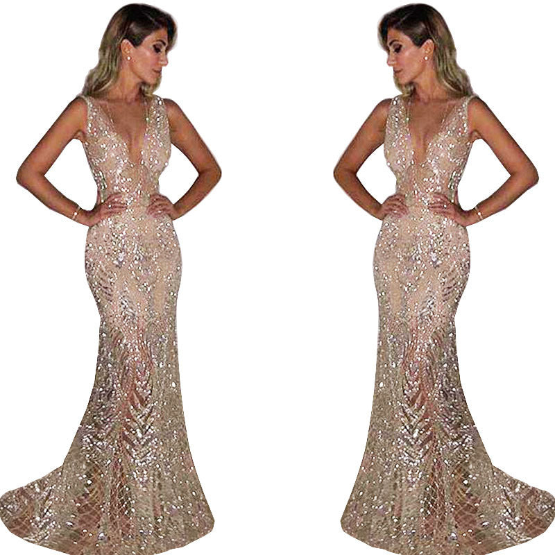 Tilføj noget særligt til din garderobe med denne eksklusive aftenkjole og nyd beundrende blikke! Perfekt til damer, der elsker elegance og stil.