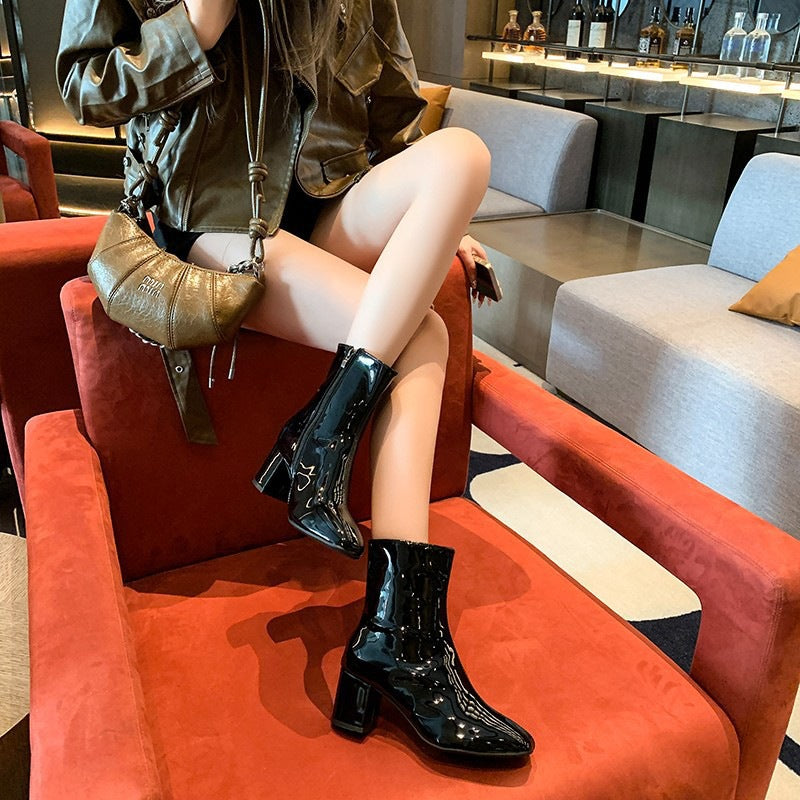 Opdag Stilla' kvindelige elegante ankelstøvler, de perfekte ledsagere til stilbevidste kvinder. Disse støvler er lavet af et højglansmateriale, der ikke kun ser fantastisk ud, men også er let at vedligeholde og holdbart. Den stabile blokhæl sørger for optimal bærekomfort og giver din silhuet et moderigtigt touch.