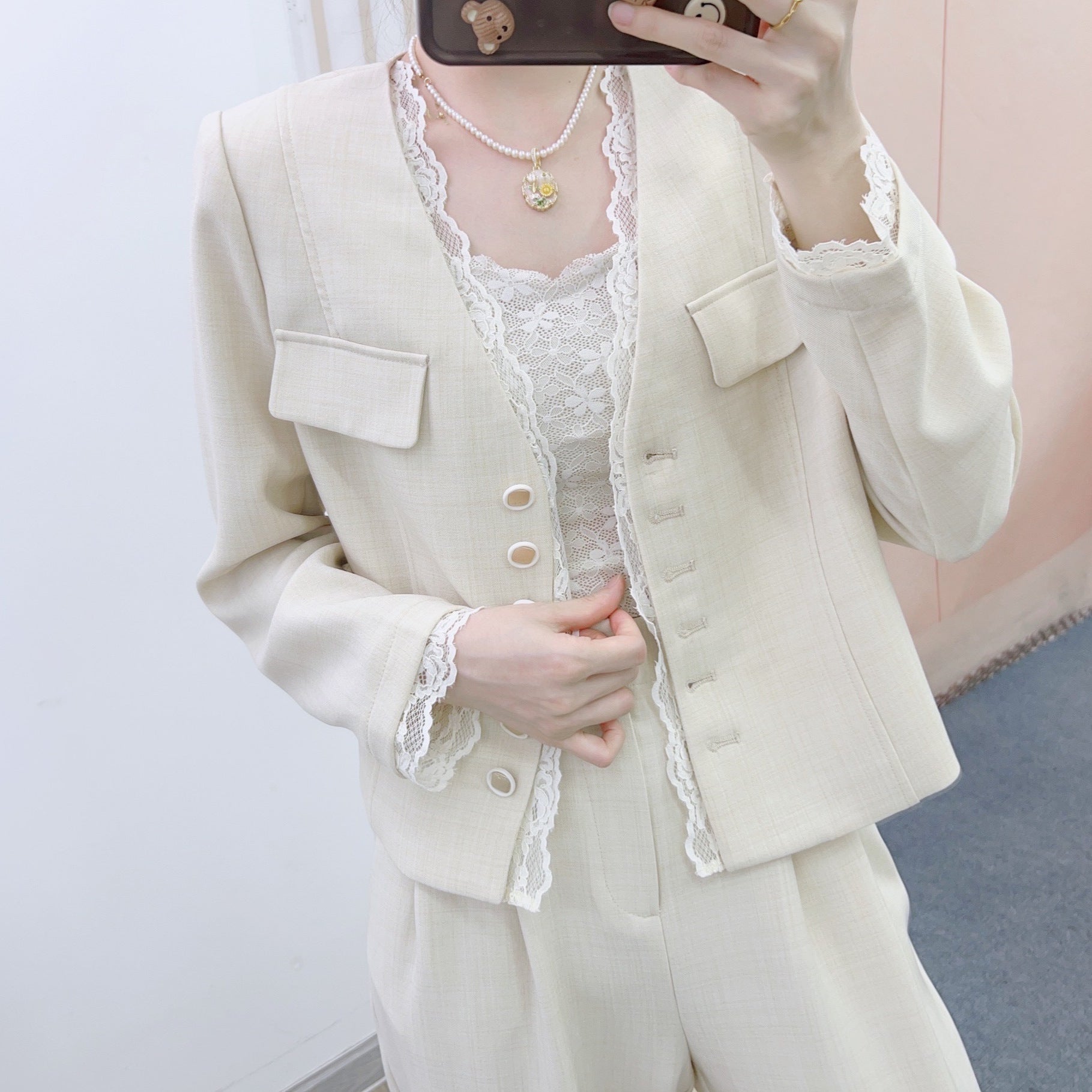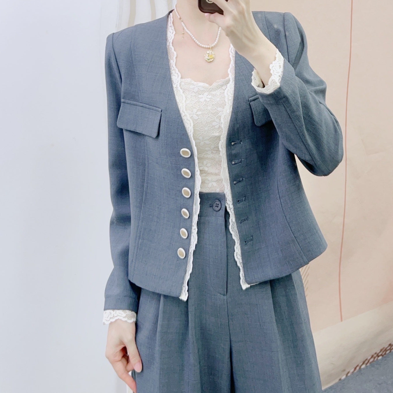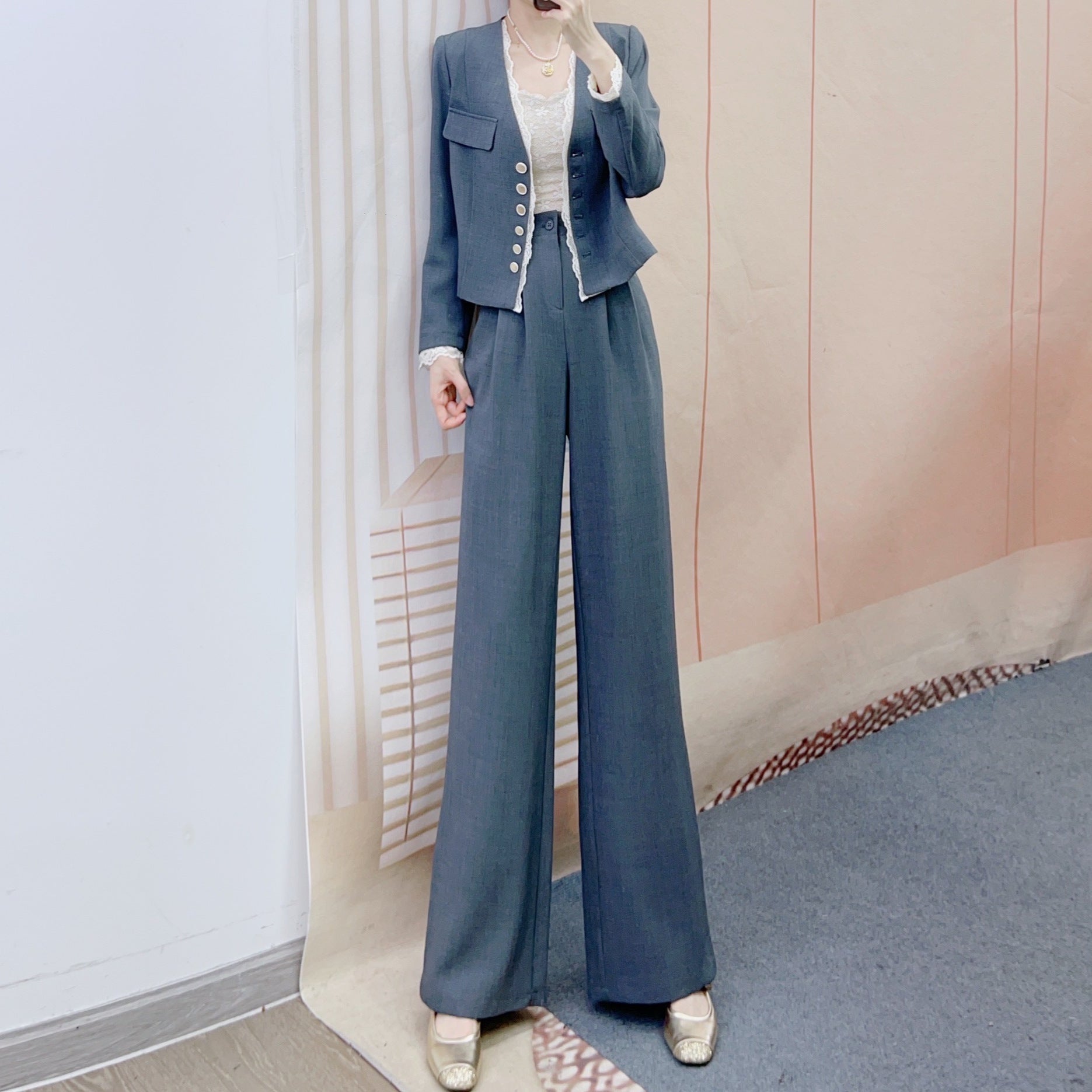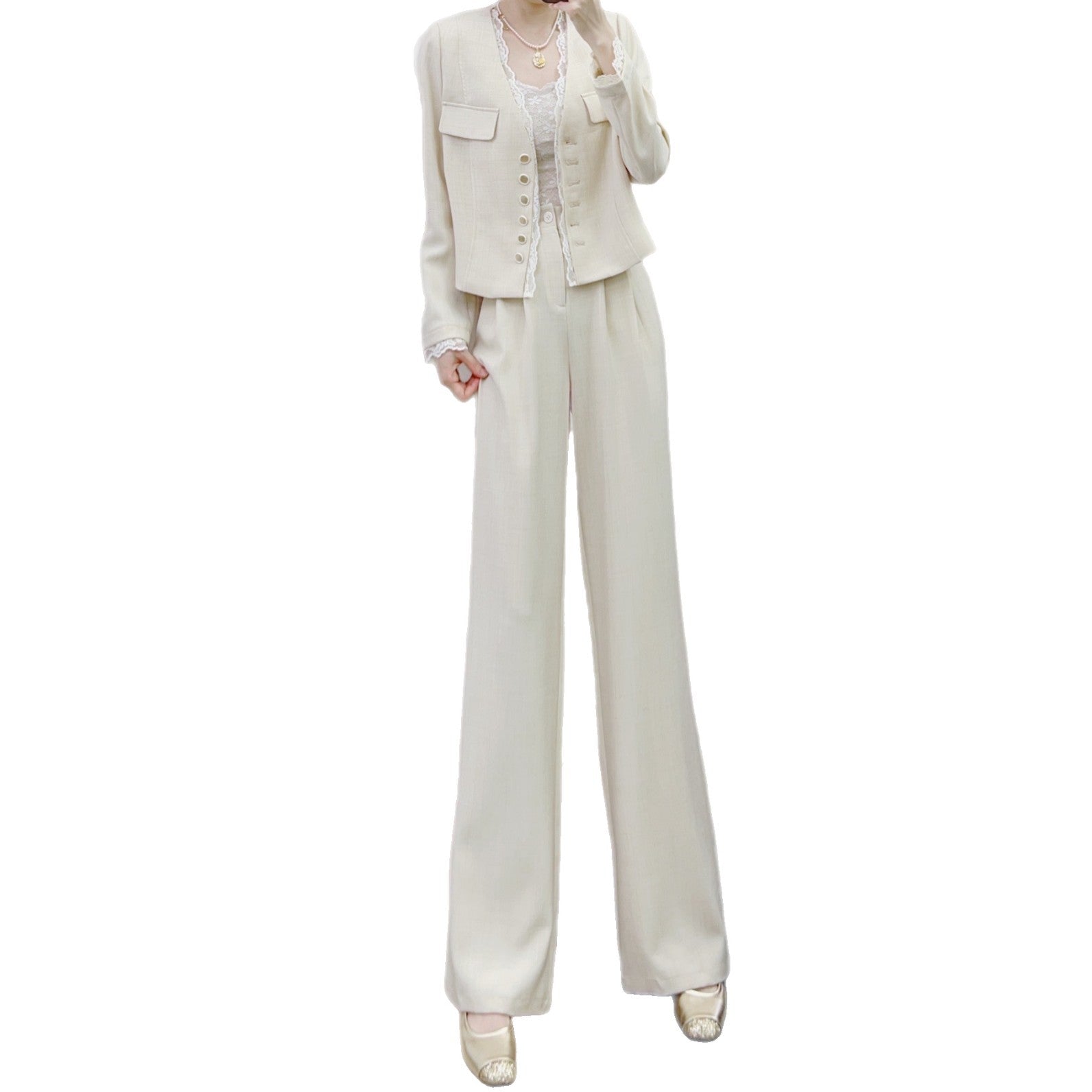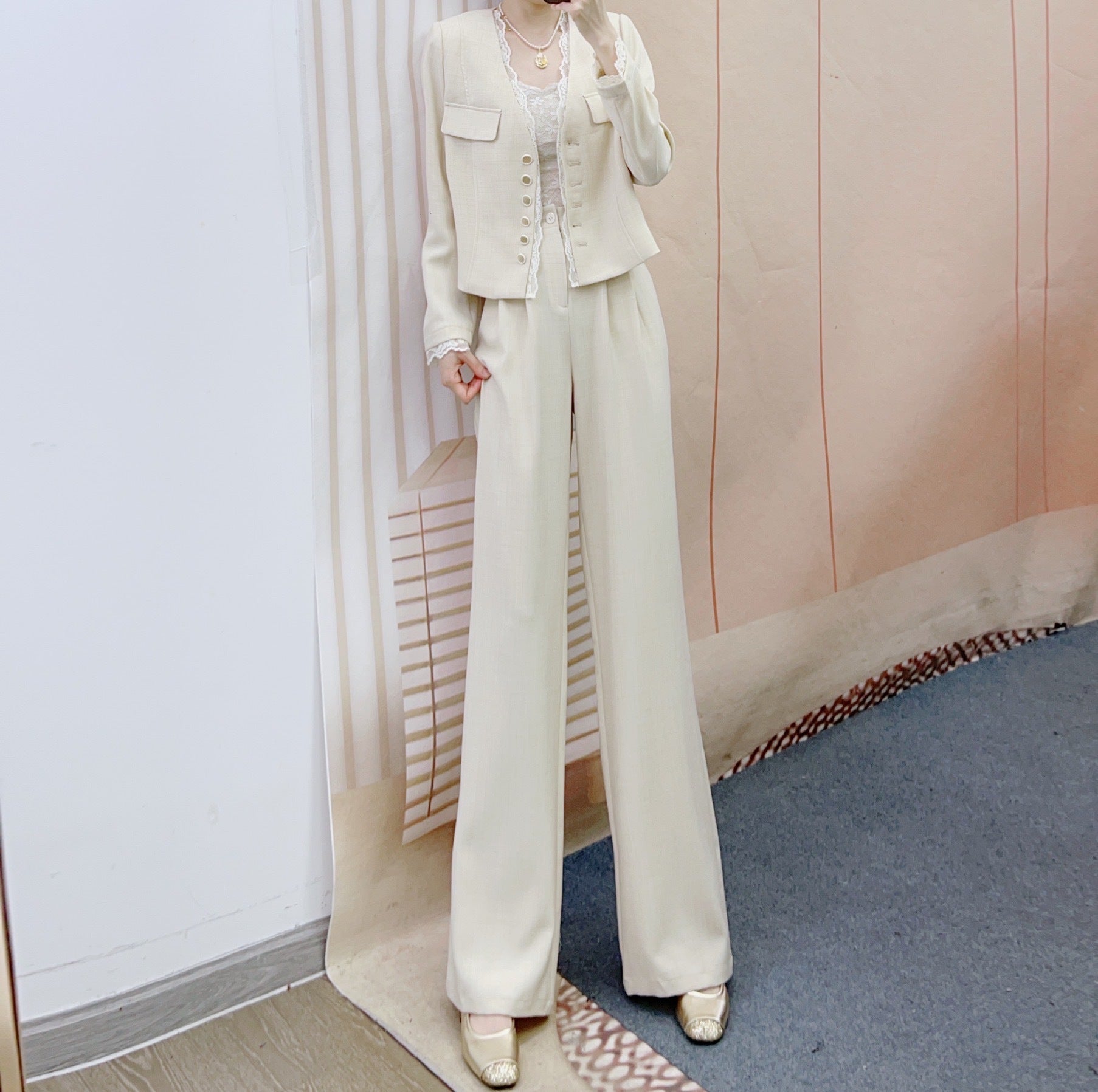 Opdag vores dames elegante blazer-bukser sæt, der på usædvanlig måde forener stil og komfort. Dette raffinerede sæt består af en tætsiddende blazer og et løstsiddende par bukser, der giver dig en feminin silhuet.