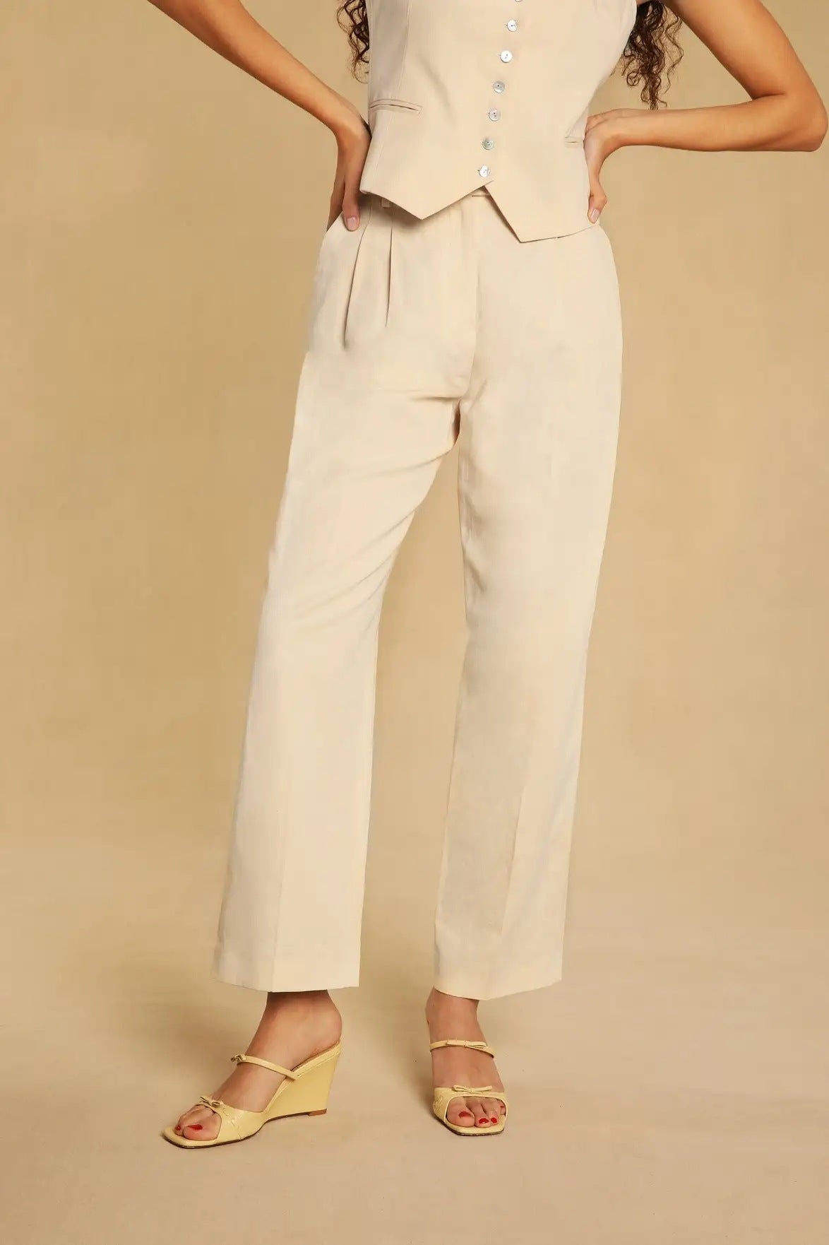 Opdag den perfekte kombination af stil og komfort med disse elegante, løst siddende bukser fra Stilla. Disse bukser tilbyder ikke kun en høj talje, der visuelt forlænser taljen, men også stilfulde plisseringer, der giver et raffineret præg.