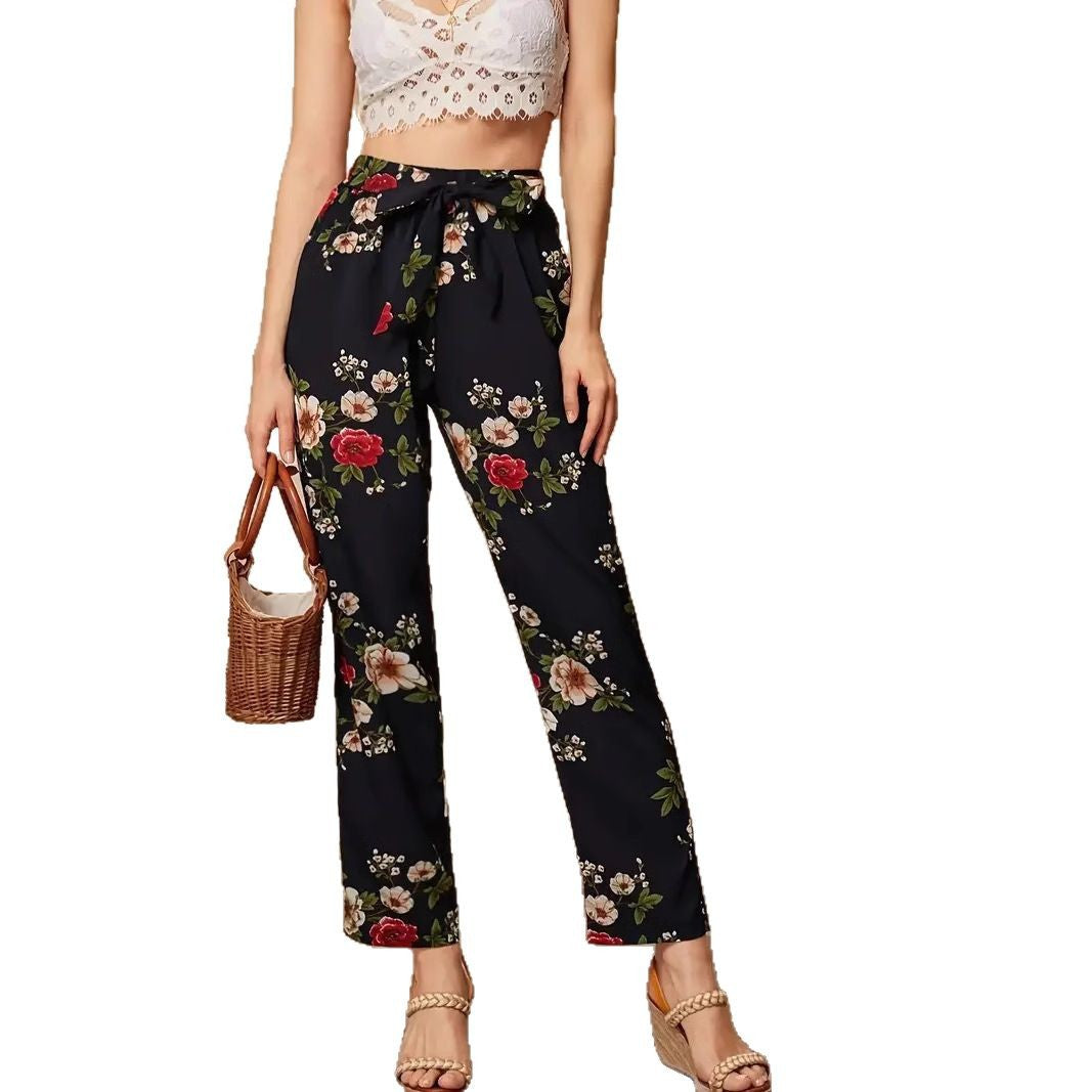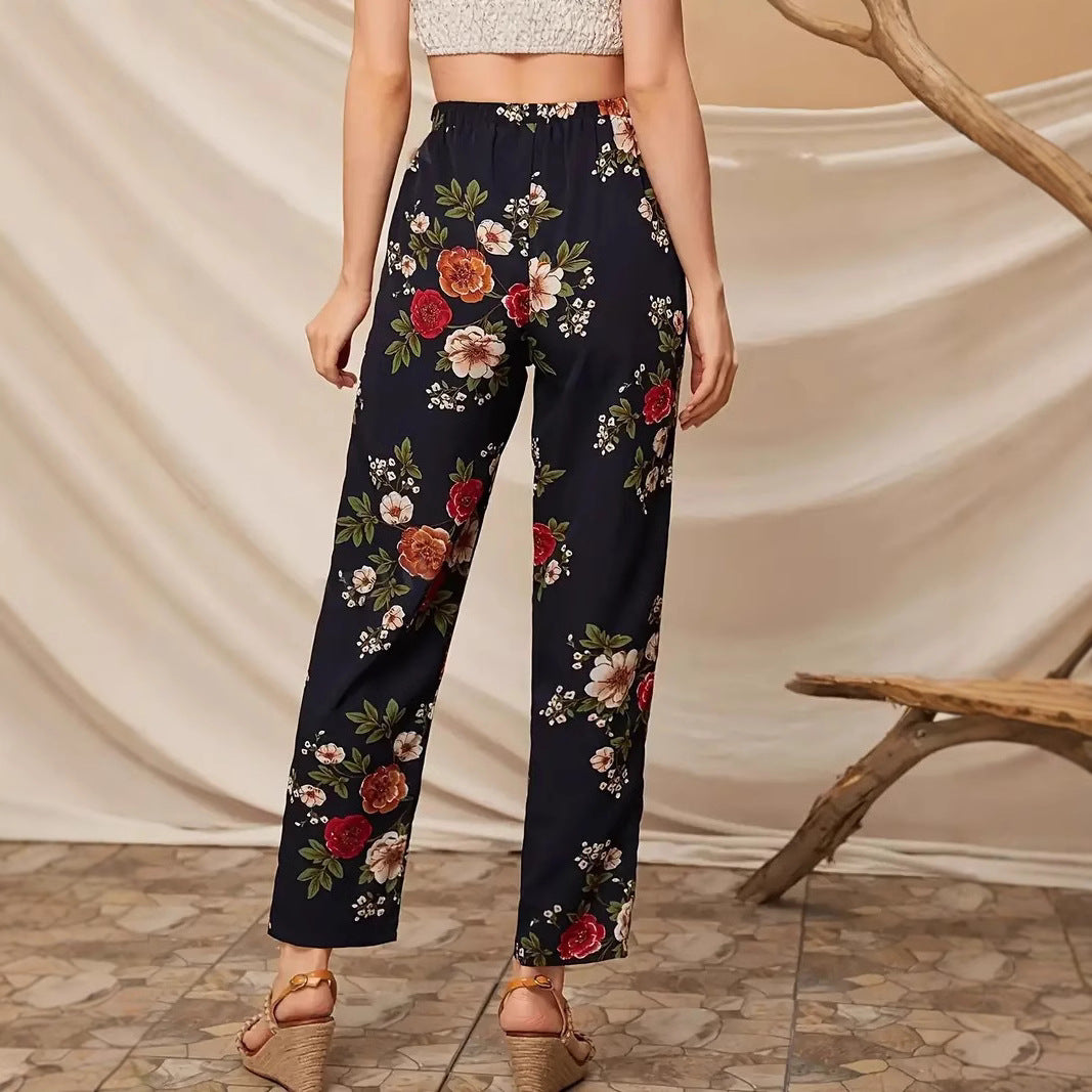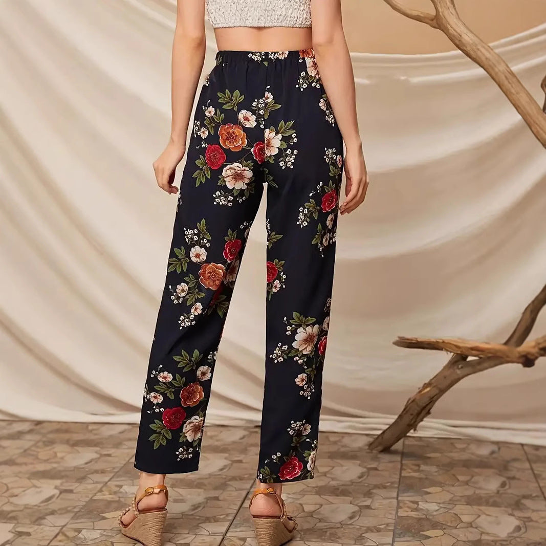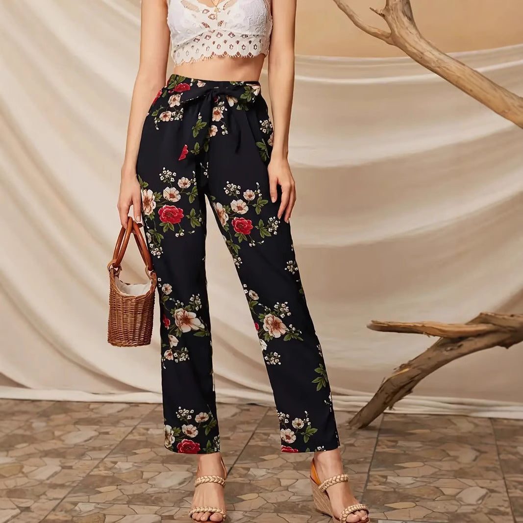 Opdag de elegante fritidbukser til damer med blomstermønster og bindebælte fra Stilla, det perfekte valg for stilbevidste kvinder. Disse bukser forener komfort og modeshik og er ideelle til alle sommeroutfits.