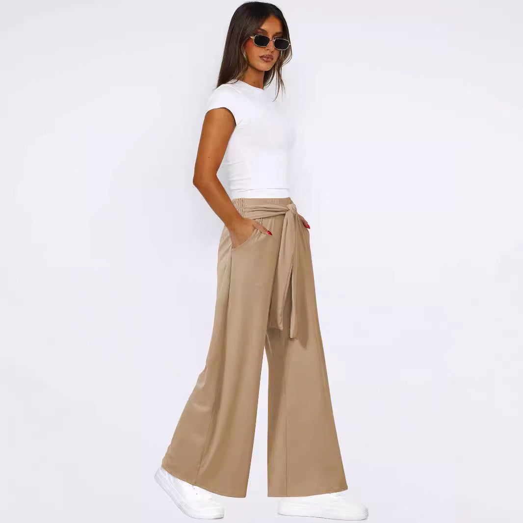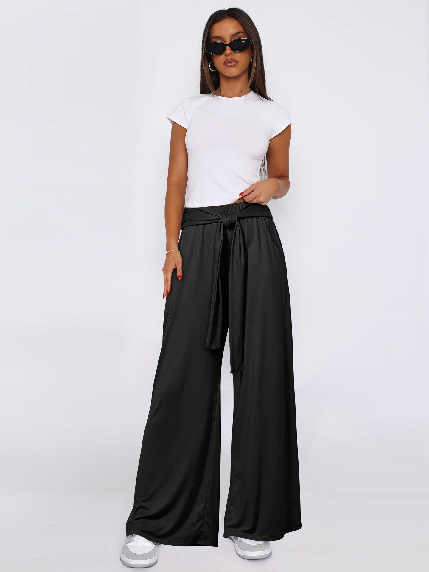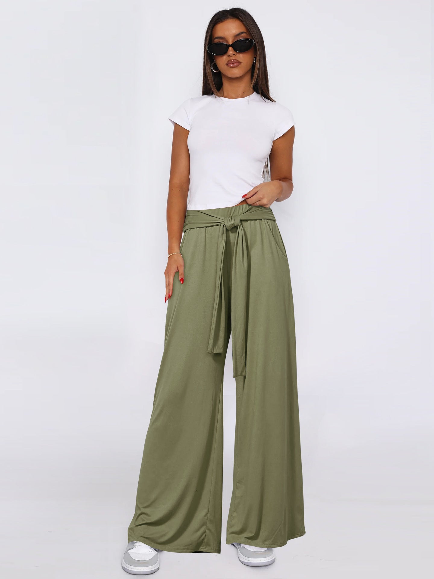 Giv din garderobe det ekstra touch med dames elegante højtaljede bukser med bindebælte og vidde ben fra Stilla og nyd det perfekte look til enhver lejlighed!