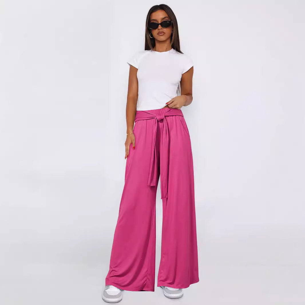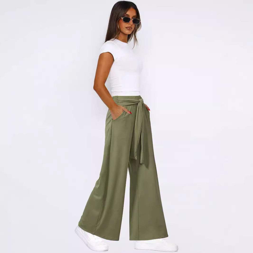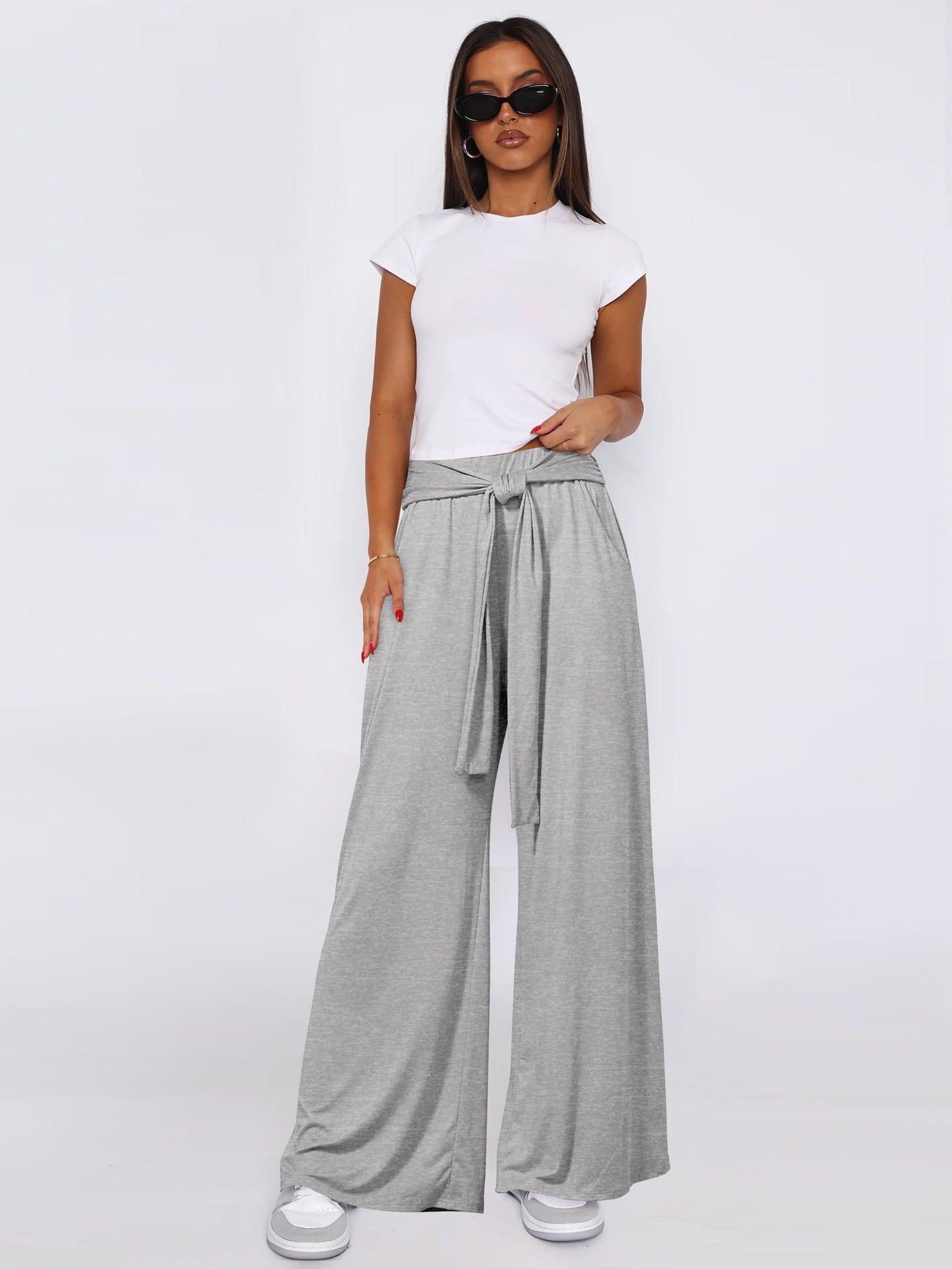 Giv din garderobe det ekstra touch med dames elegante højtaljede bukser med bindebælte og vidde ben fra Stilla og nyd det perfekte look til enhver lejlighed!