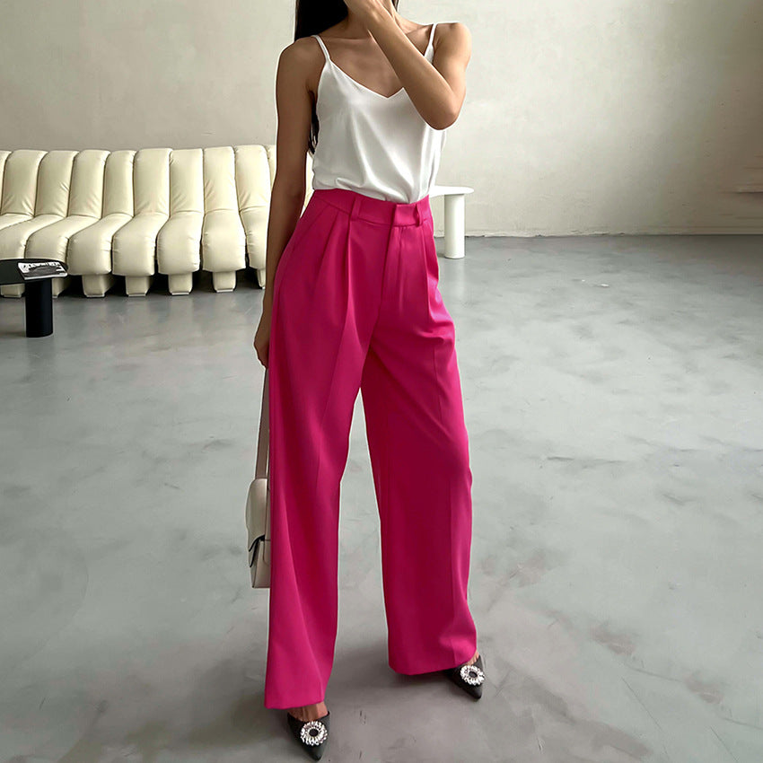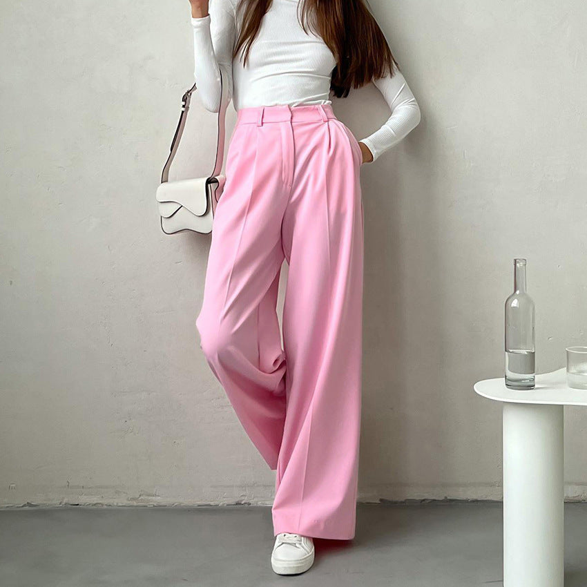 Opdag disse dames High-Waist-bukser med bred pasform, der tilføjer en elegant nuance til ethvert outfit. Disse bukser kombinerer komfort og stil, ideelt til kontorarbejde eller særlige lejligheder.