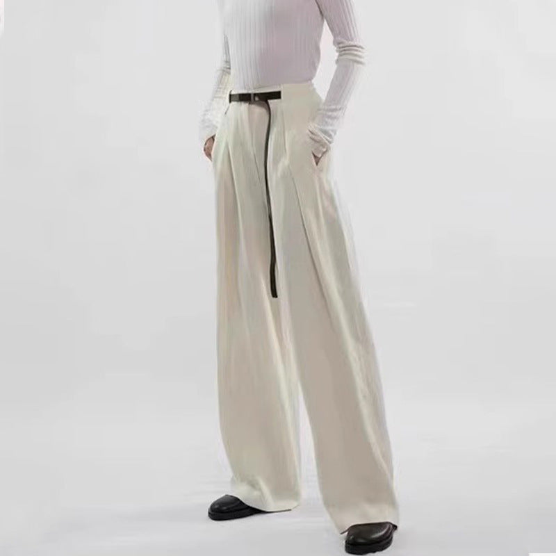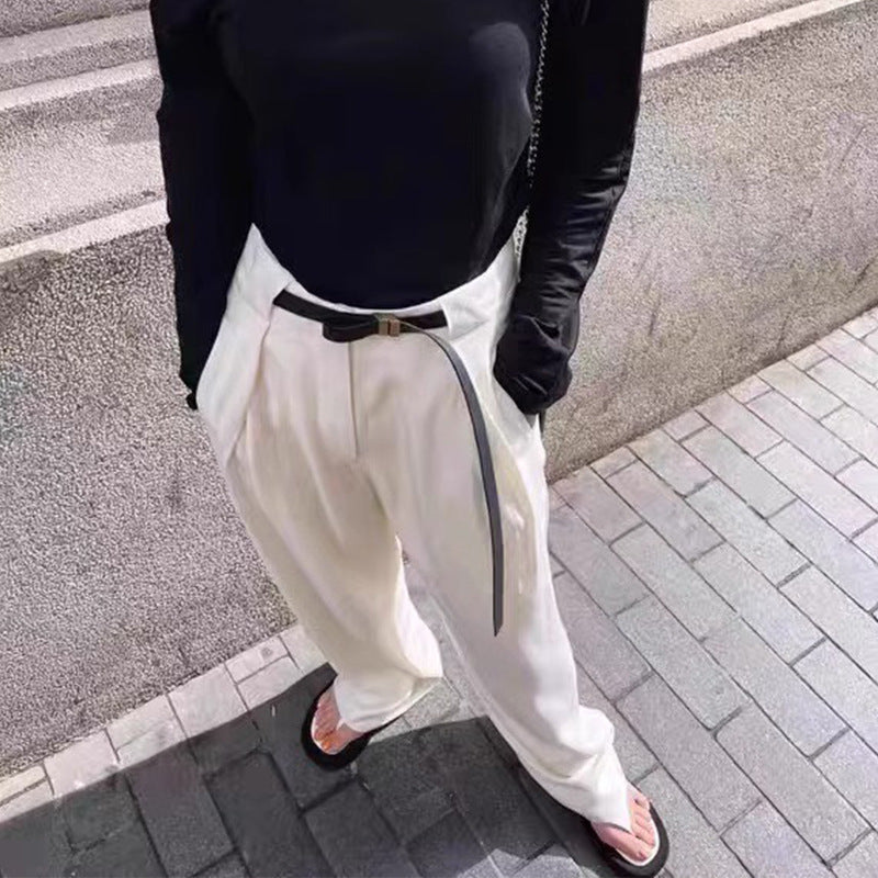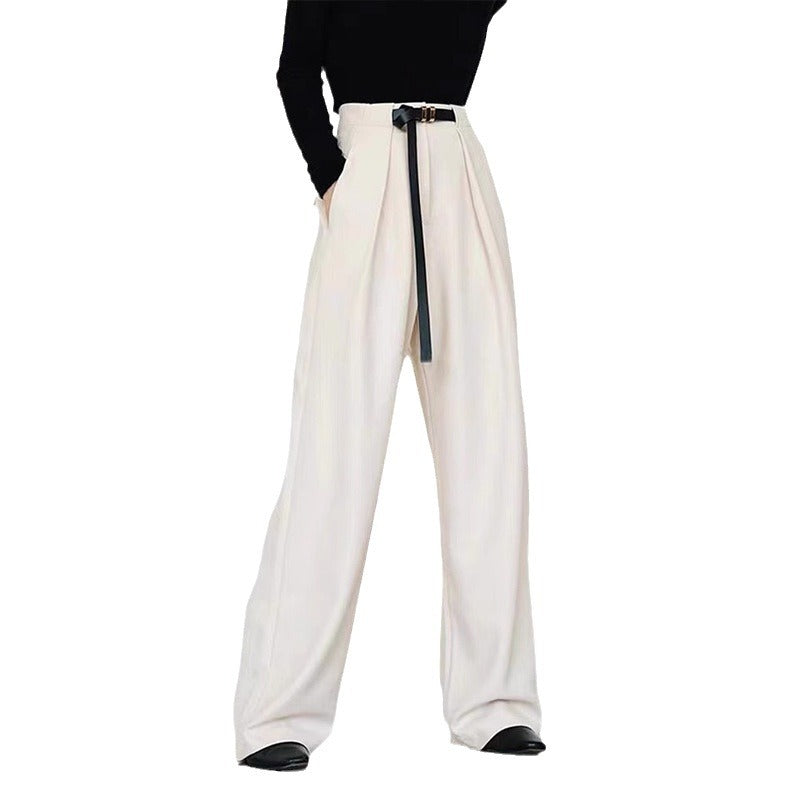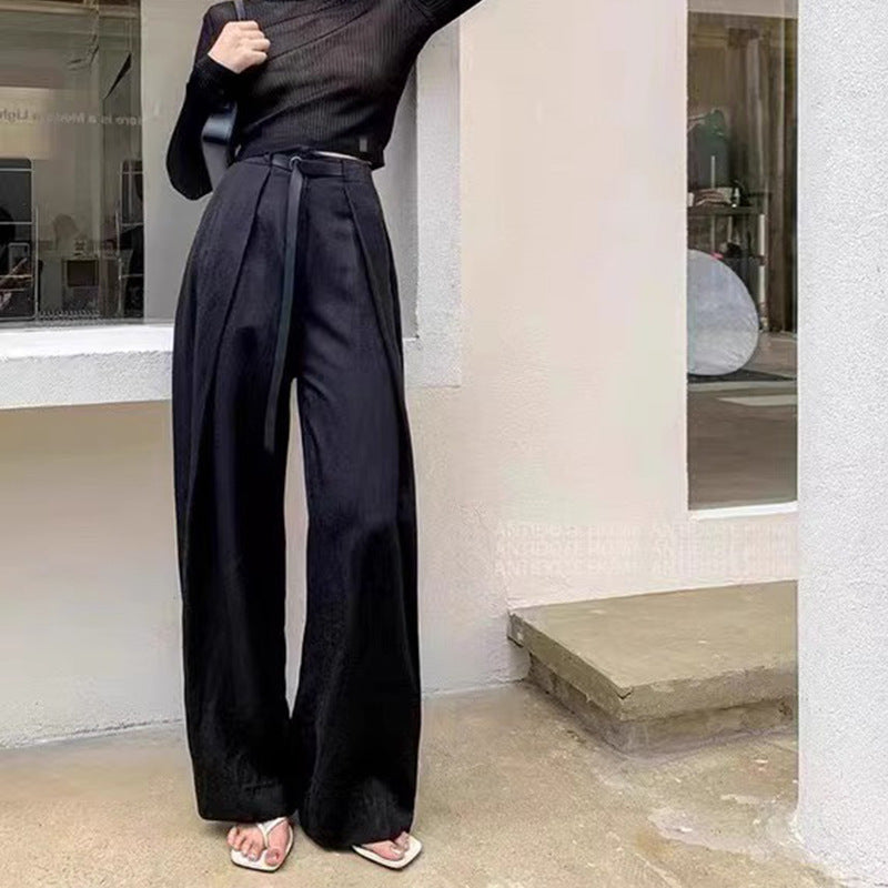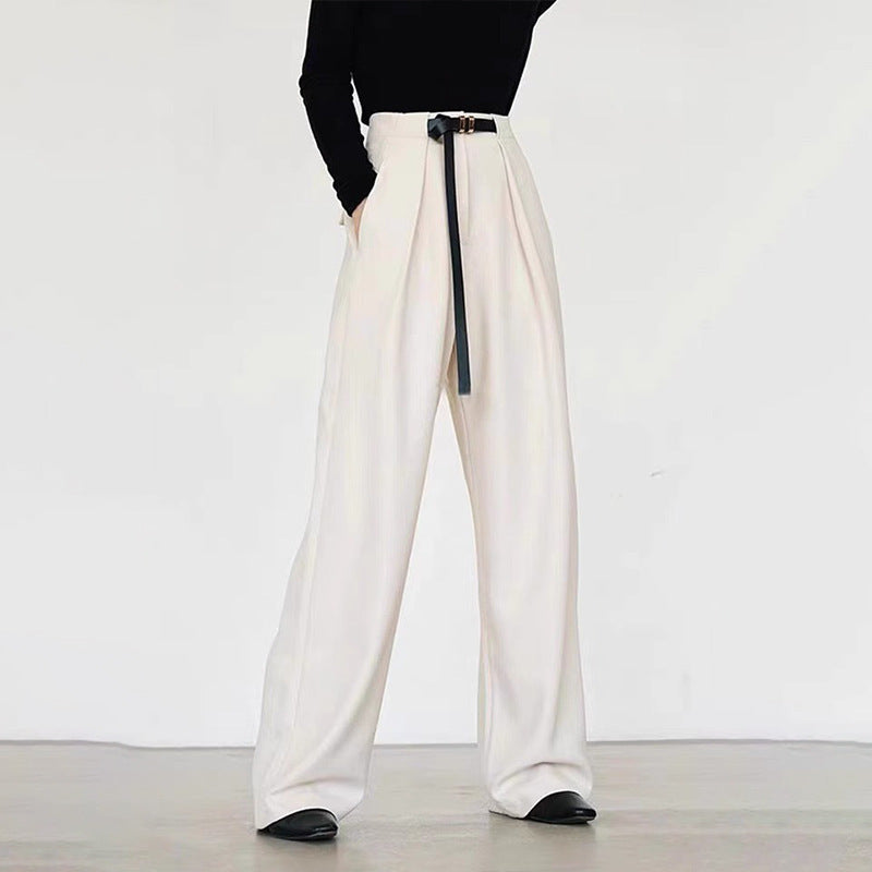 Opdag vores stilfulde kvinde elegante høj talje bukser, der imponerer med et bredt ben og en smal taljebånd. Disse bukser forener komfort og elegance og er dermed perfekte til forskellige anledninger, fra fritid til forretningsmøde.