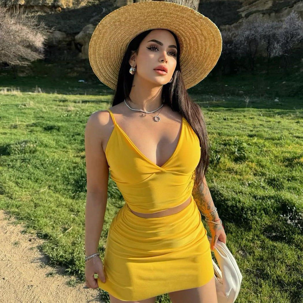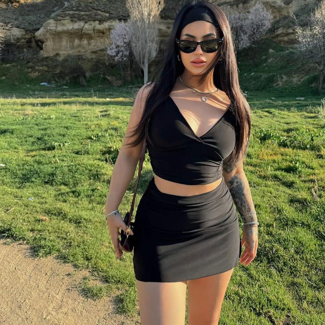 Opdag vores stilfulde og trendy sæt: det delikate crop top kombineret med en tætsiddende nederdel, ideel til de varme dage. Sættet lavet af højkvalitets, let materiale sikrer optimal bærekomfort og bevægelsesfrihed.
