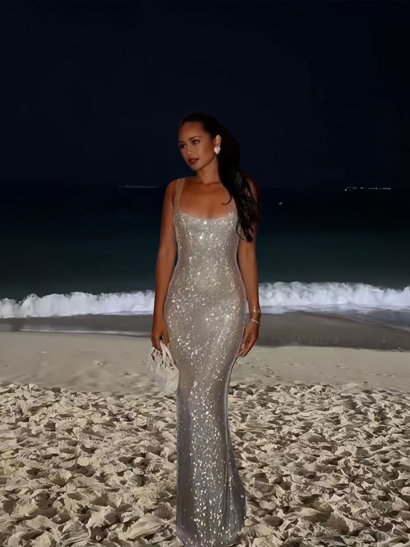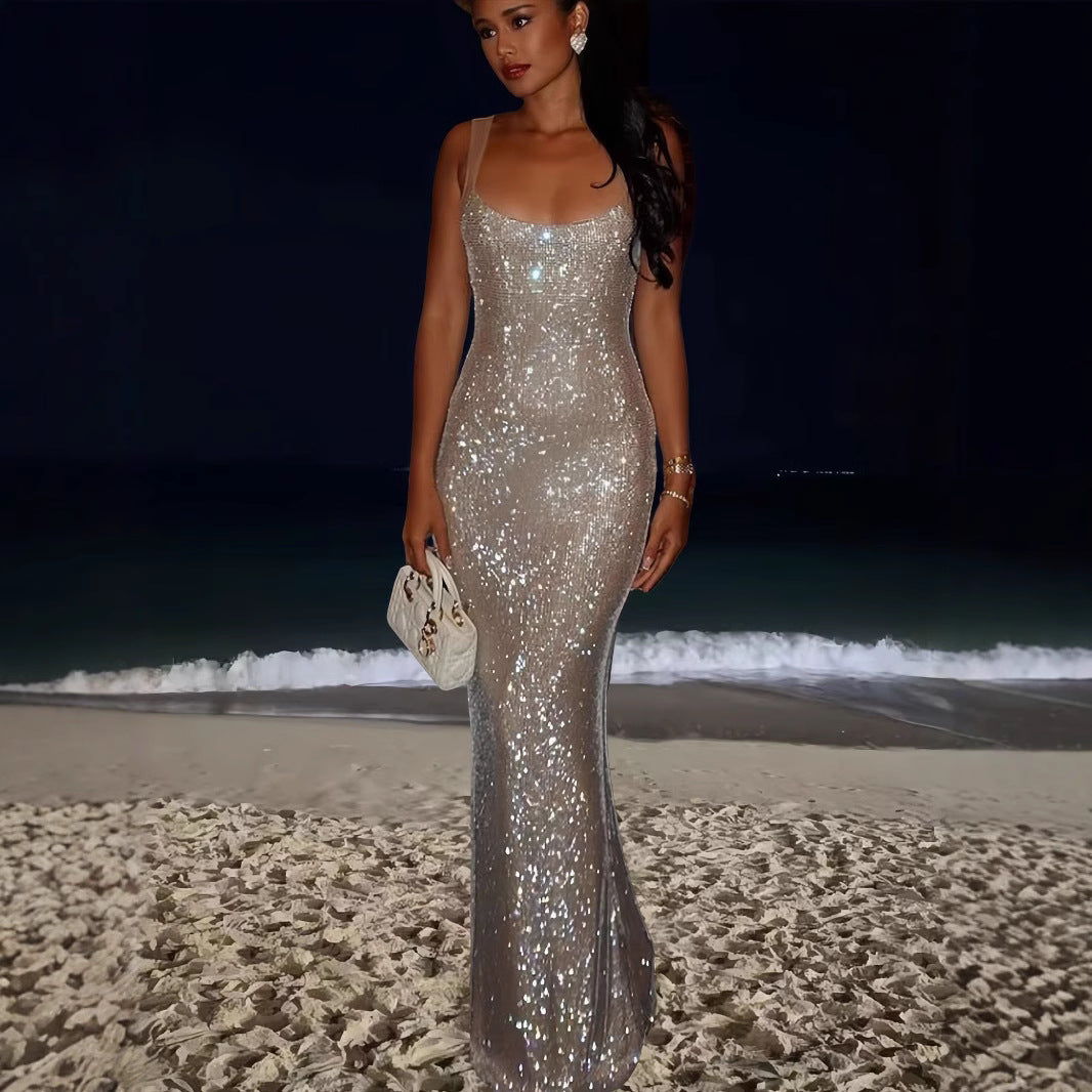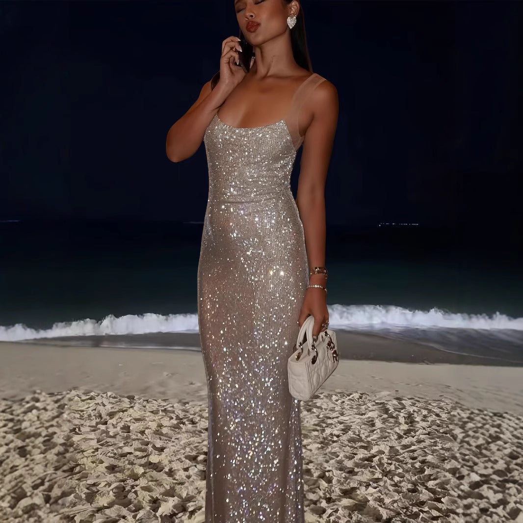 Med denne glamourøse aftenkjole vil du helt sikkert tiltrække alle blikke. Kombiner den med elegante accessories og sko for et uforglemmeligt ensemble. Tøv ikke, og gør den til dit nye yndlingsstykke i dag!