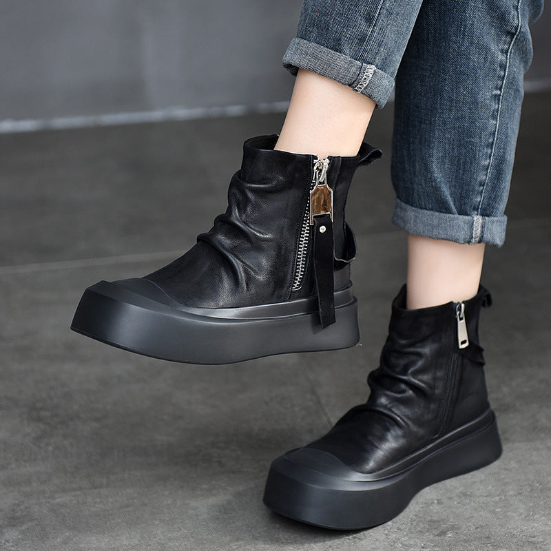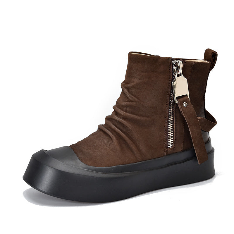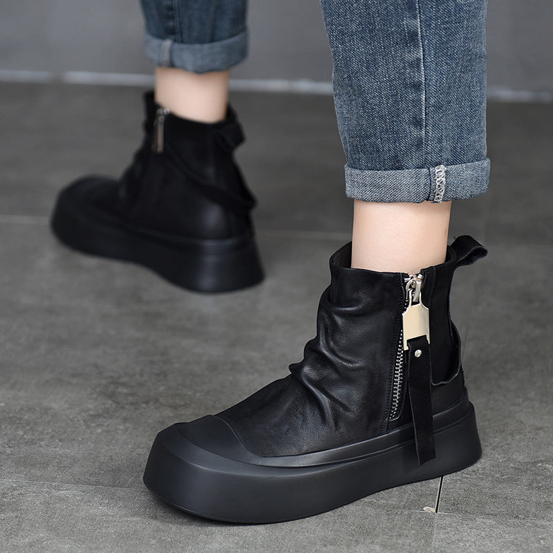Praktisk lynlås: Den sidelæggende lynlås gør det nemt at tage dem af og på, samtidig med at den giver et moderne look.