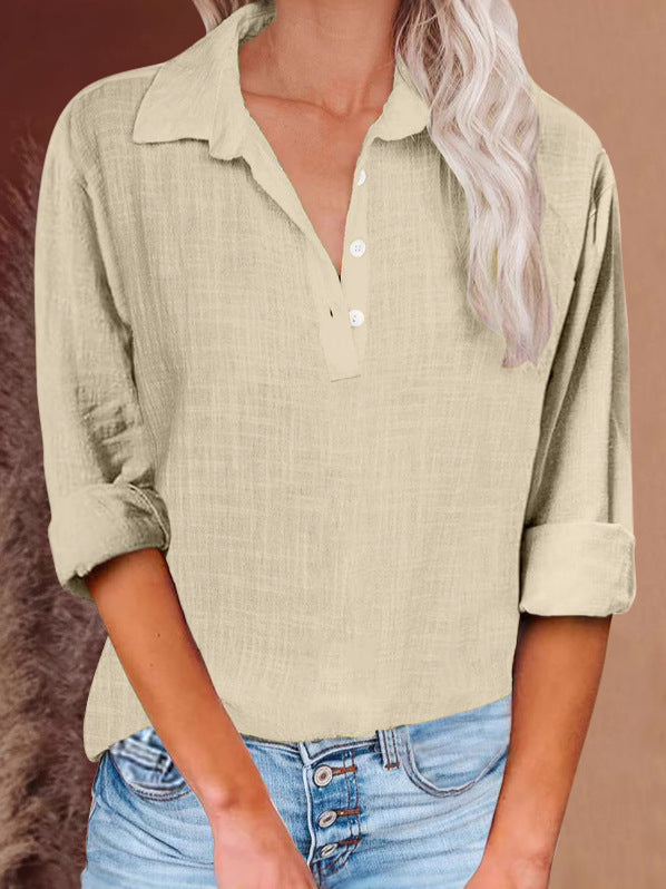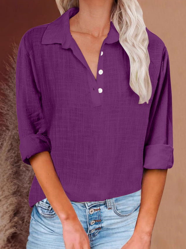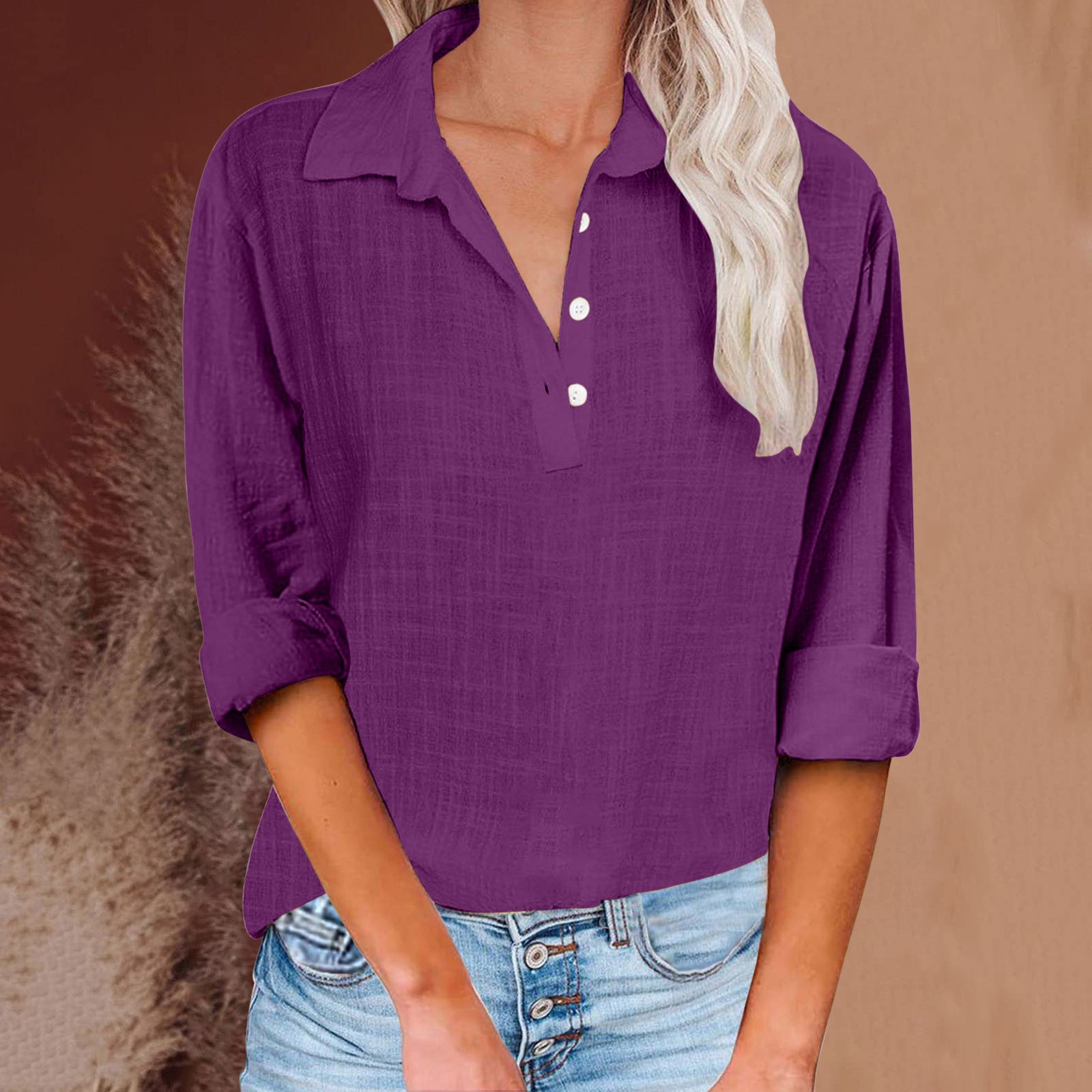 Opdag den perfekte kombination af stil og komfort med vores dameslætte skjorte med knaplukning og opslåelige ærmer. Denne skjorte er ideel til den modebevidste kvinde, der værdsætter et afslappet, men stadig stilfuldt outfit.