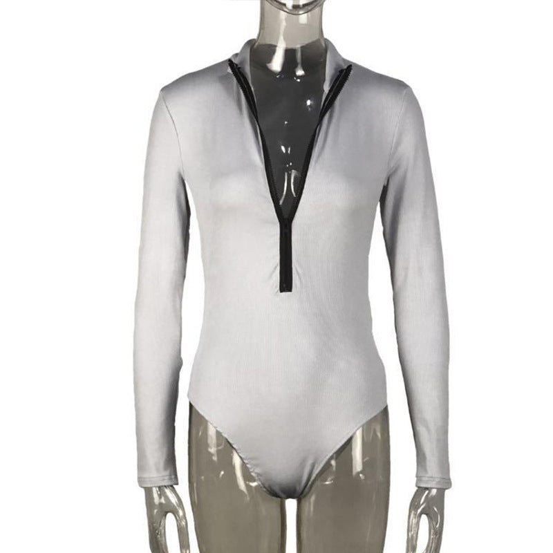 Elegante design: Med sin høje krave og den praktiske lynlås er dette bodysuit ideelt til både afslappede og finere lejligheder.