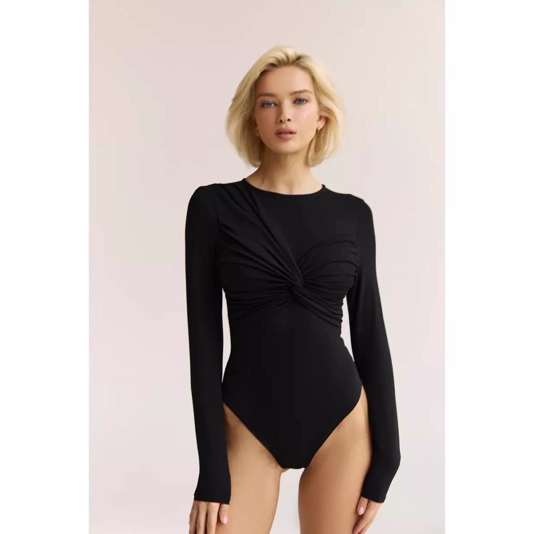 Oplev den tidløse dame langærmet bodysuit med dekorativ knudedesign fra Stilla. Denne elegante bodysuit forener komfort og stil og er det perfekte valg til enhver fashionabel lejlighed, hvad enten det er dag eller nat.