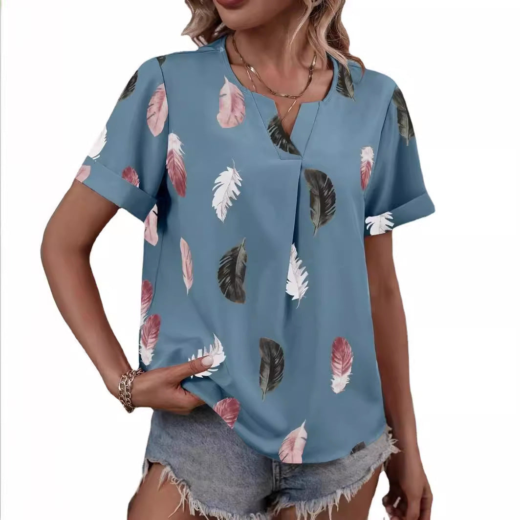 Opdag den perfekte kombination af stil og komfort med vores afslappede bluse med stilfuldt bladmønster. Denne elegante bluse er ideel til varme dage og giver ethvert outfit et friskt pust.