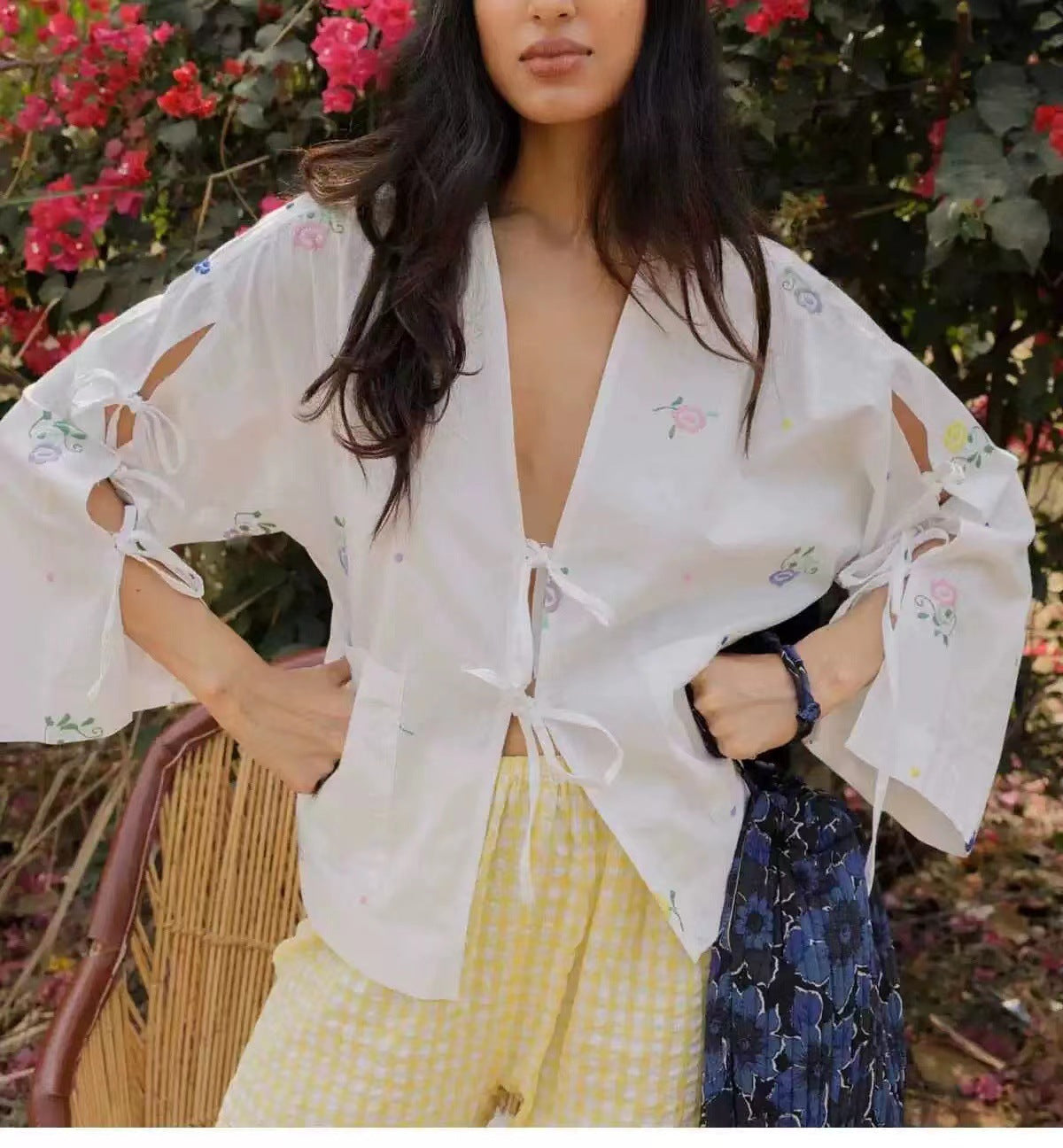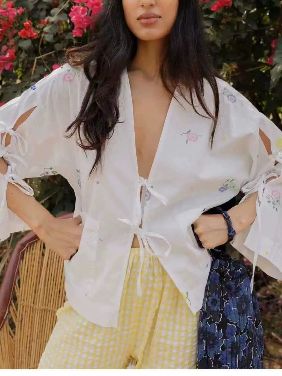 Opdag den ideelle tilføjelse til din sommergarderobe med vores dames afslappede bluse med blomstrede broderier og legende detaljer. Denne stilfulde bluse forener elegance og komfort og er perfekt til varme dage samt afslappede aftener.