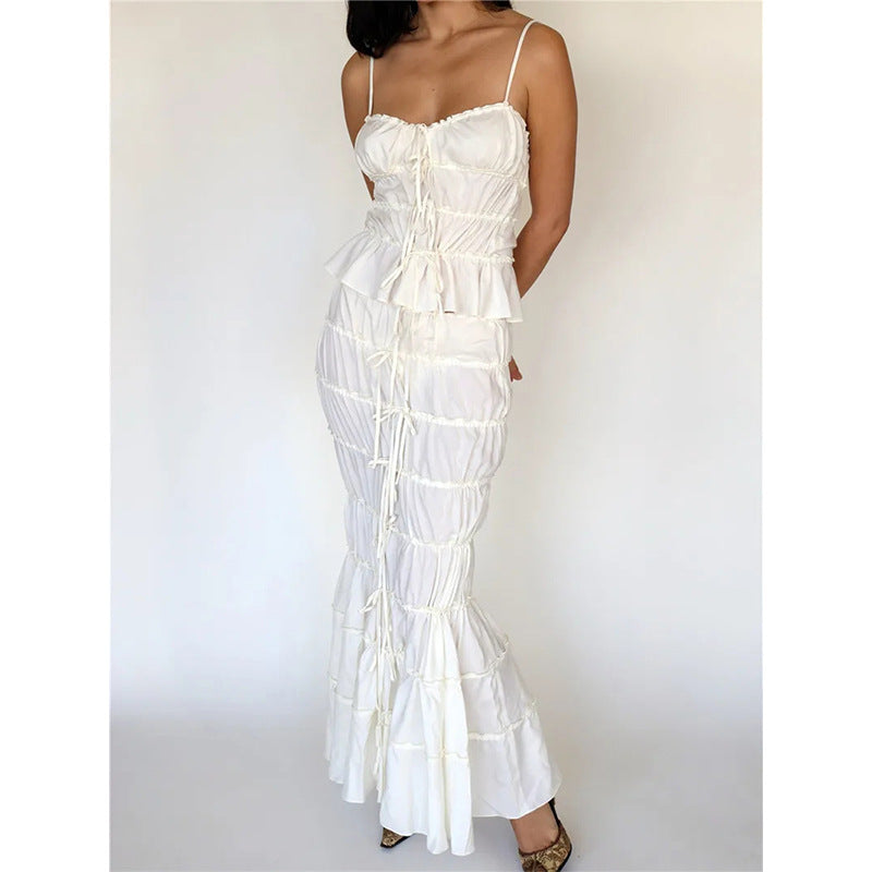 Dette betagende damekjole forener stil og komfort og er det perfekte valg til varme dage og særlige anledninger. Med sit unikke ruffle-design og det fleksible bindebælte giver det en perfekt pasform og smigrer din figur.