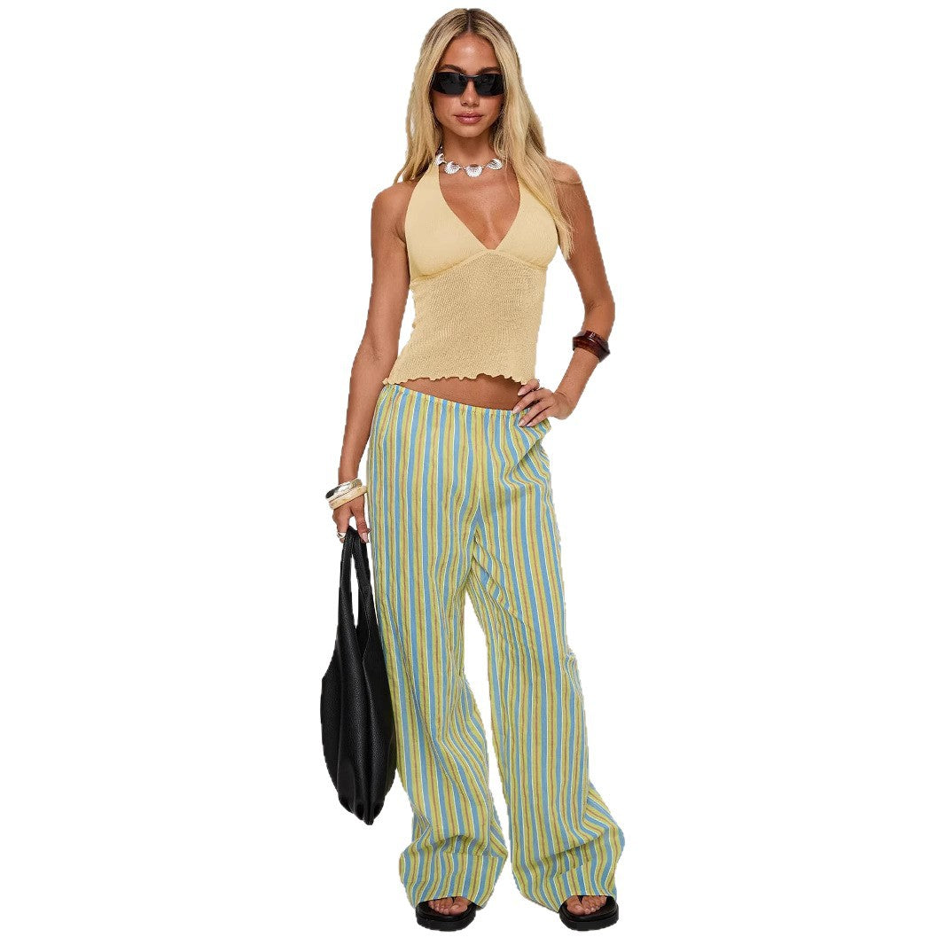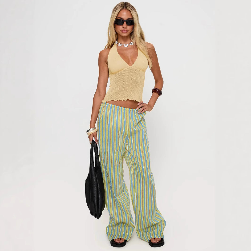 Oplev den perfekte blanding af stil og komfort med vores damers afslappede brede bukser med unikt stribemønster fra Stilla. Disse bukser er ideelle til varme dage og giver et afslappet, modetrendende look.