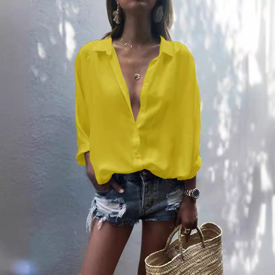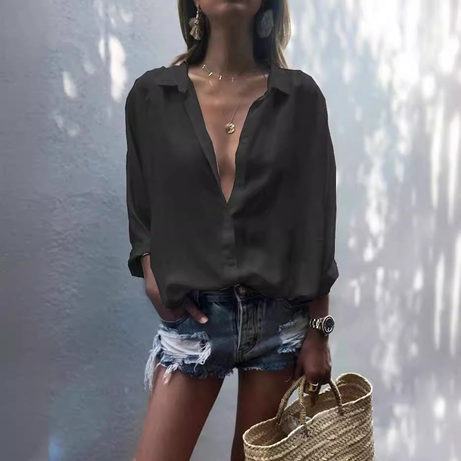 Oplev den perfekte kombination af elegance og afslappethed med vores damers afslappede chiffonbluse. Denne bluse kendetegnes ved sit sofistikerede snit og det luftige chiffonstof, som sørger for en behagelig bærekomfort. Den dybe V-udskæring giver blusen et feminint præg og gør den ideel til sommerlige lejligheder.