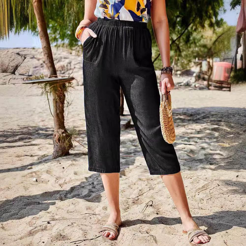 Opdag den perfekte kombination af komfort og stil med de afslappede 3/4 bukser fra Stilla. Disse bukser er ideelle til varme dage og giver dig mulighed for at bevæge dig frit, samtidig med at de ser stilfulde ud.