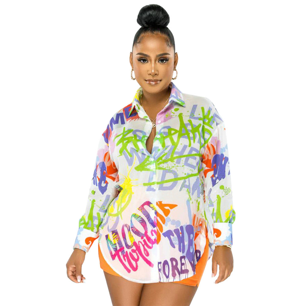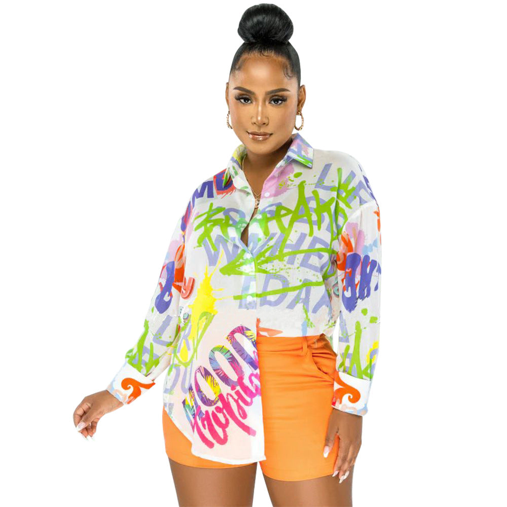 Opdag Stilla' damesække overshirt-bluse med farverig grafiktryk og lange ærmer, som er perfekt til modebevidste kvinder. Dette alsidige overdel kombinerer moderne design med fremragende bærekomfort.