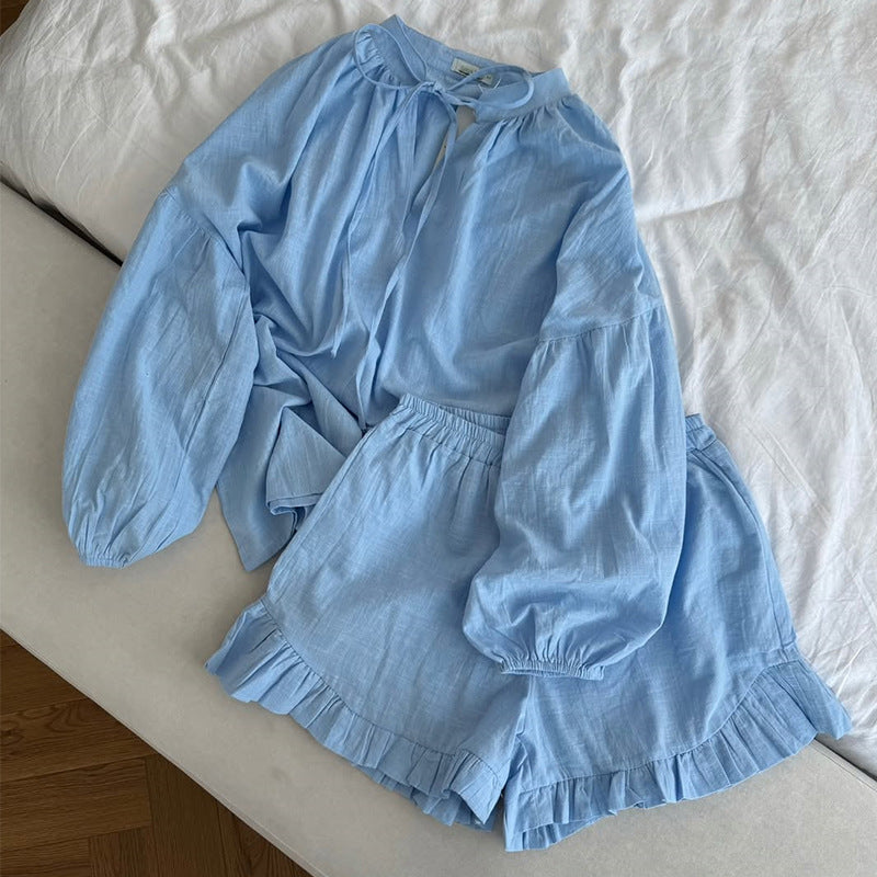 Opdag det stilfulde kvinde linned shorts-sæt fra Stilla, der er ideelt til de varme dage. Dette sæt kombinerer komfort med elegance, perfekt til udendørs lejligheder eller afslappede eftermiddage. Toppen har voluminøse ærmer, der giver et trendy look, mens den løse pasform tilbyder optimal bevægelsesfrihed.