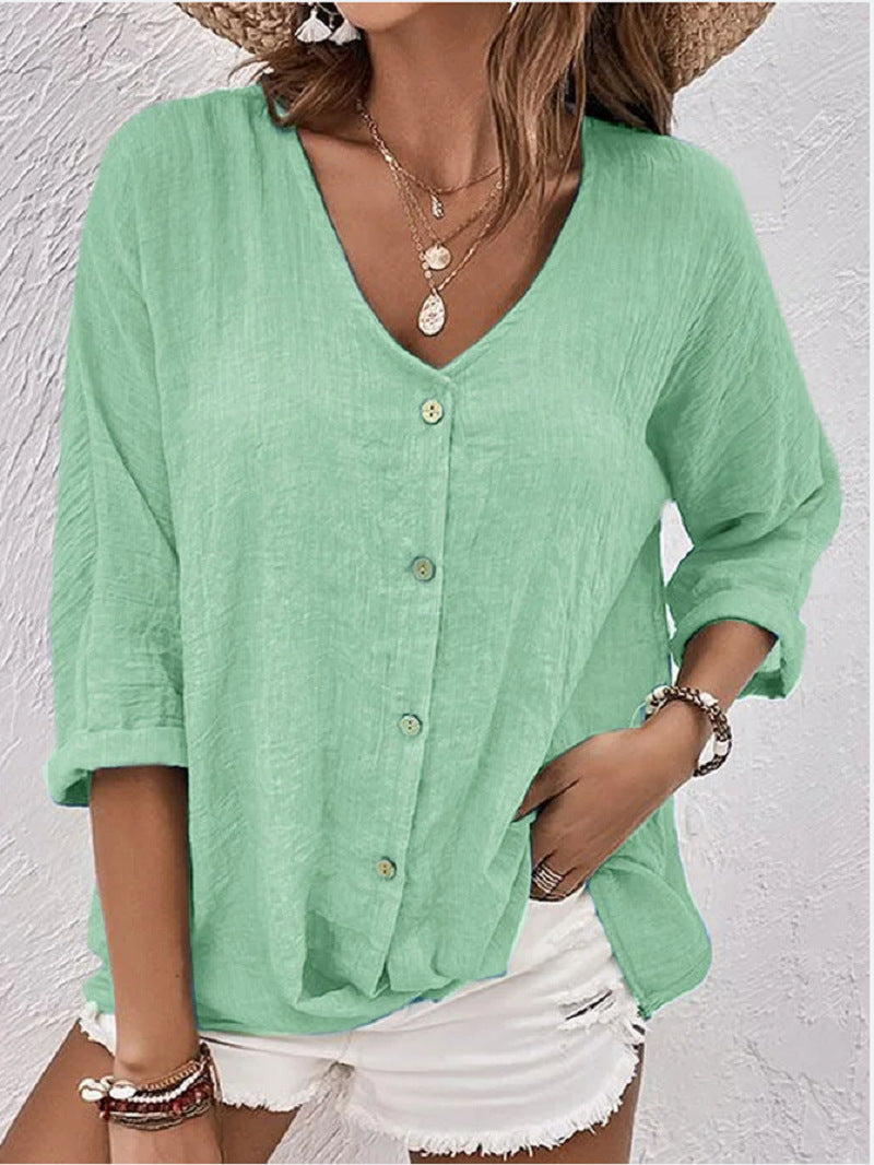 Opdag vores dames afslappede langærmede bluse fra Stilla, den perfekte kombination af stil og komfort. Denne bluse er lavet af kvalitetsmateriale, der er åndbart, og er ideel til varme dage.