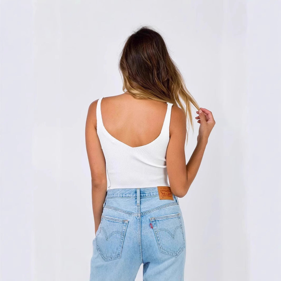 Opdag vores dames elegante crop-top med fin ribstruktur og forførende V-hals fra Stilla, som er perfekt til stilfulde fritidslooks.