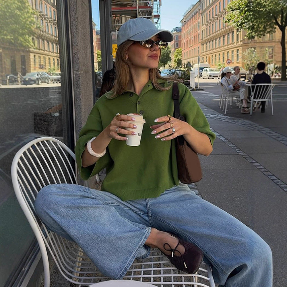 Opdag den perfekte ledsager til afslappede dage udendørs med vores afslappede polo-kortærmesweater fra Stilla. Denne stilfulde sweater forener komfort og modechik og er ideel til et afslappet look.