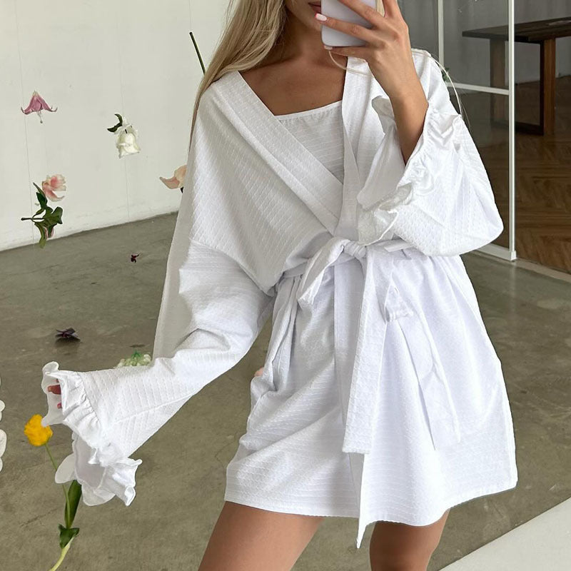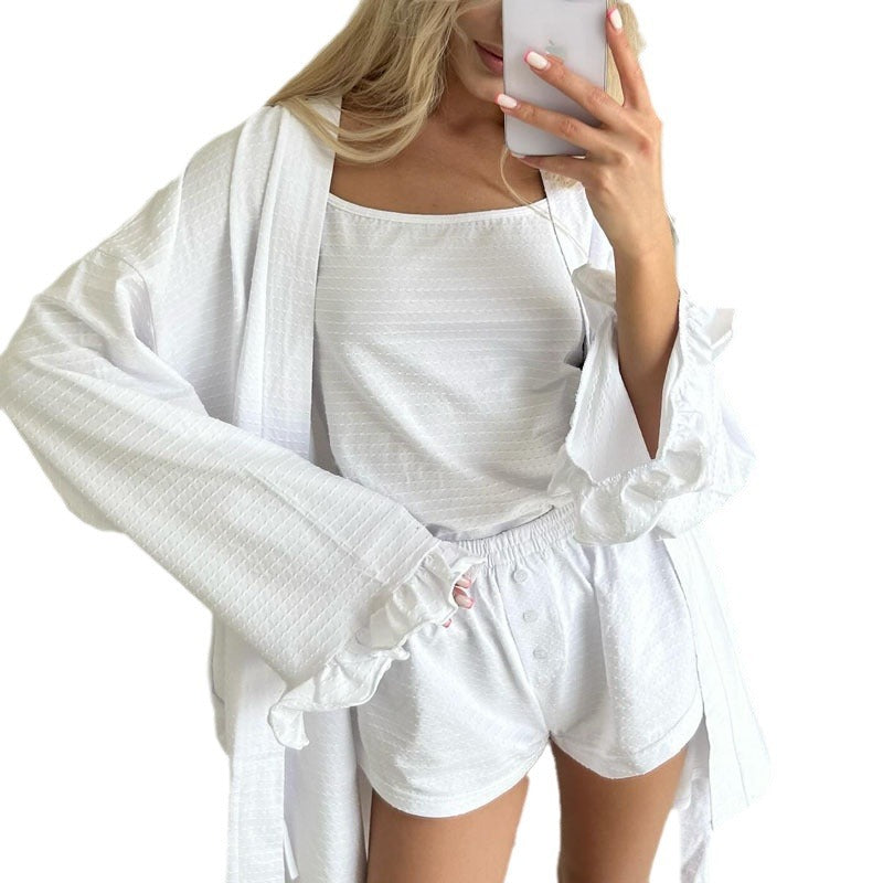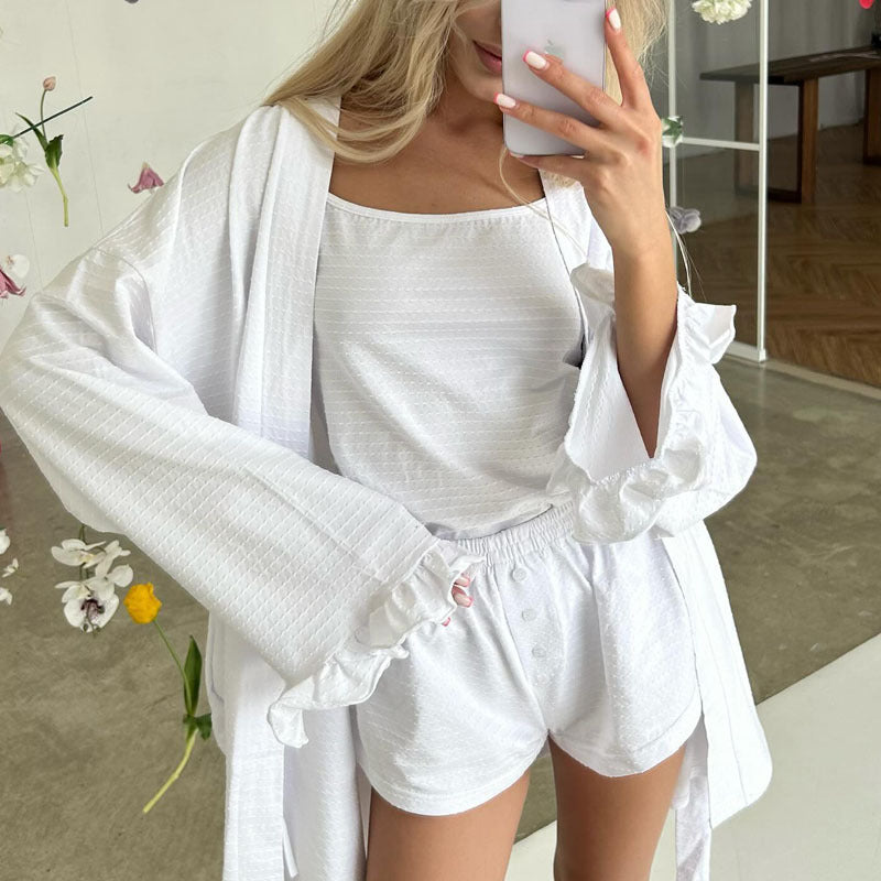 Dette pyjamasæt forener stil og komfort og er et must-have for enhver modebevidst dame. Få dit sæt nu og nyd den fortryllende kombination af lethed og elegance!