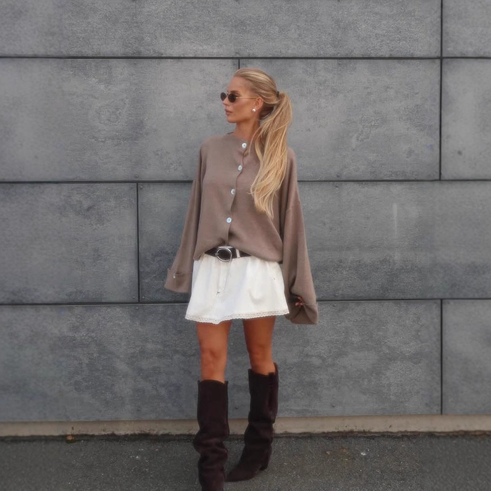 Opdag den stilfulde og komfortable dames afslappede oversized-jakke med brede ærmer fra Stilla, der er perfekt til ethvert urbant outfit. Denne jakke forener moderne mode med tidløs komfort og er et absolut must-have i din garderobe.