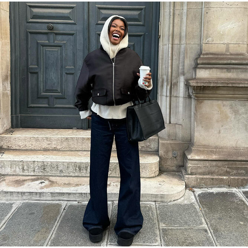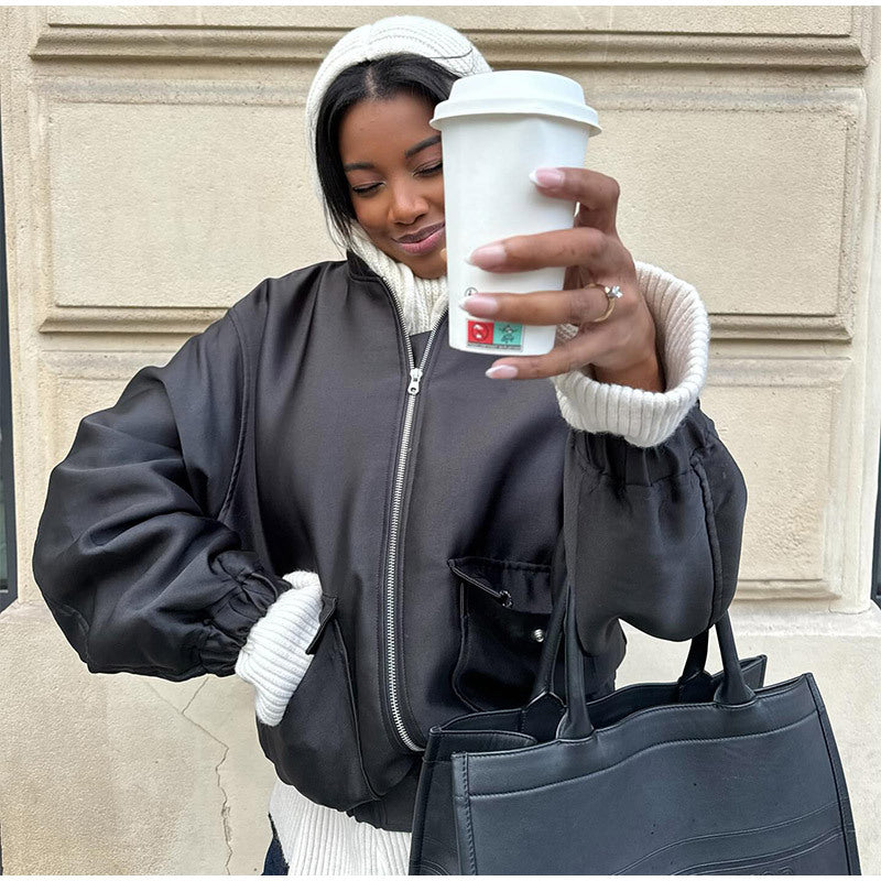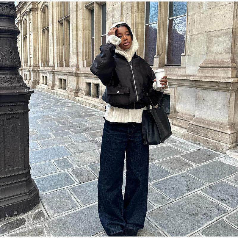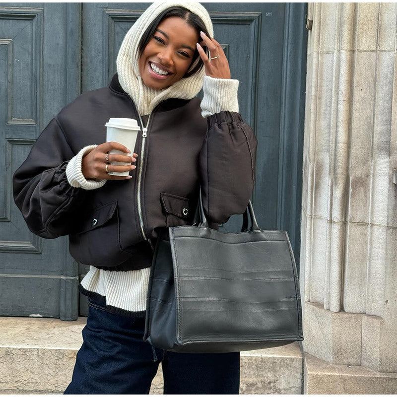Oplev den perfekte kombination af stil og komfort med vores damelækre cropped jakke med højtstående krave fra Stilla. Dette moderne tøjstykke er ideelt til modebevidste kvinder, der også ønsker at være trendy i den køligere årstid.