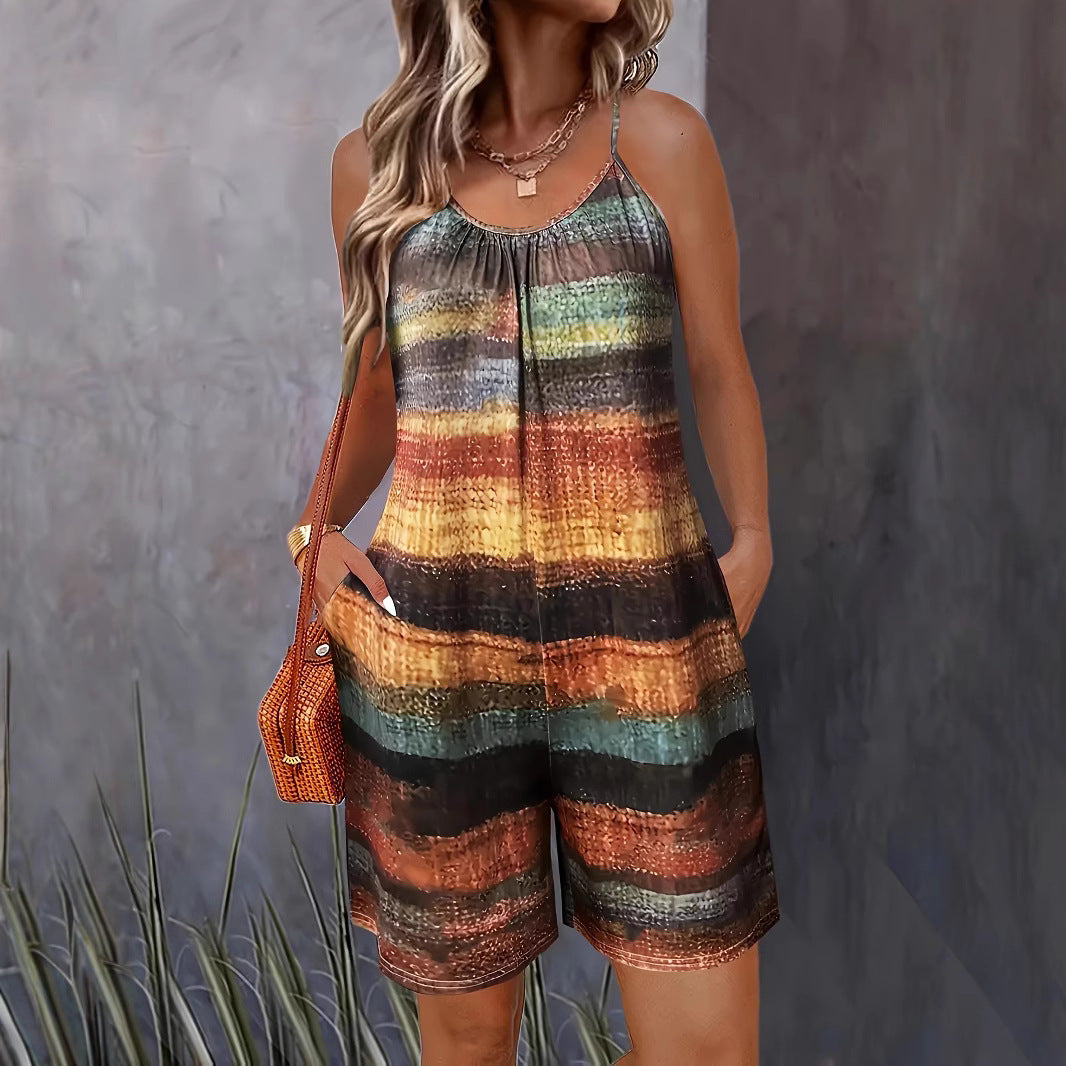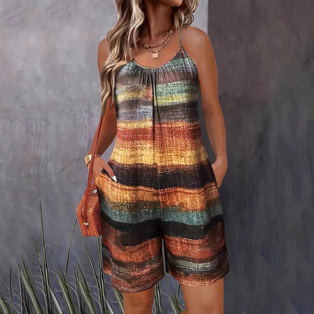 Opdag den perfekte ledsager til varme dage med vores casual jumpsuit til kvinder fra Stilla. Denne alsidige jumpsuit udmærker sig ved sit karakteristiske stribede mønster i harmoniske farvetoner, der bringer frisk liv til din sommergarderobe.