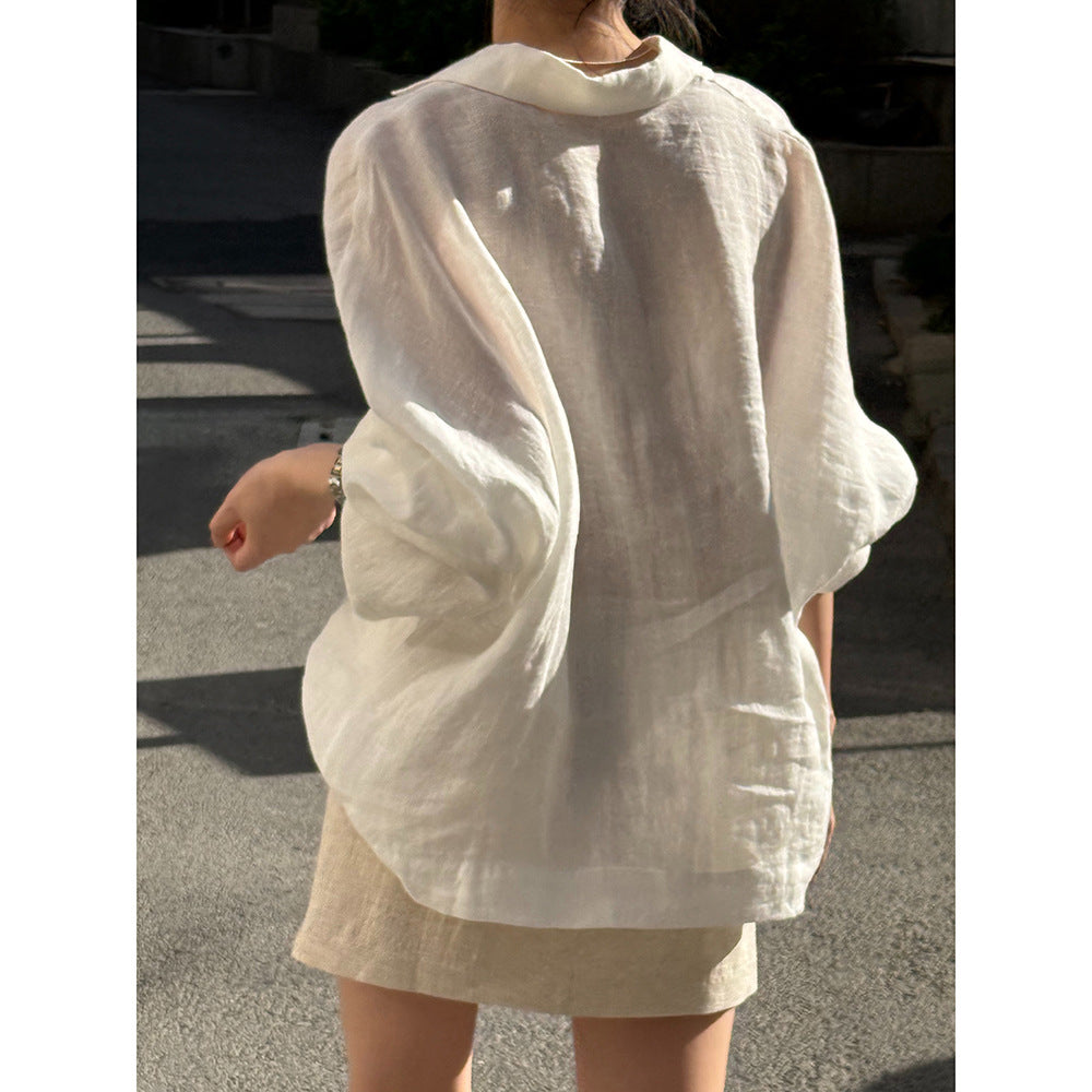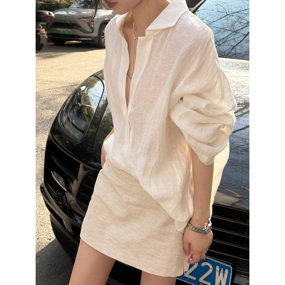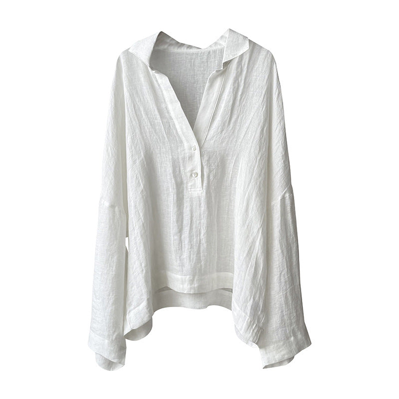 Denne stilfulde damebluse i høj kvalitet hør imponerer med sit luftige snit og komfortable pasform. Med en knapbar udskæring og et afslappet design er den ideel til casual anledninger.