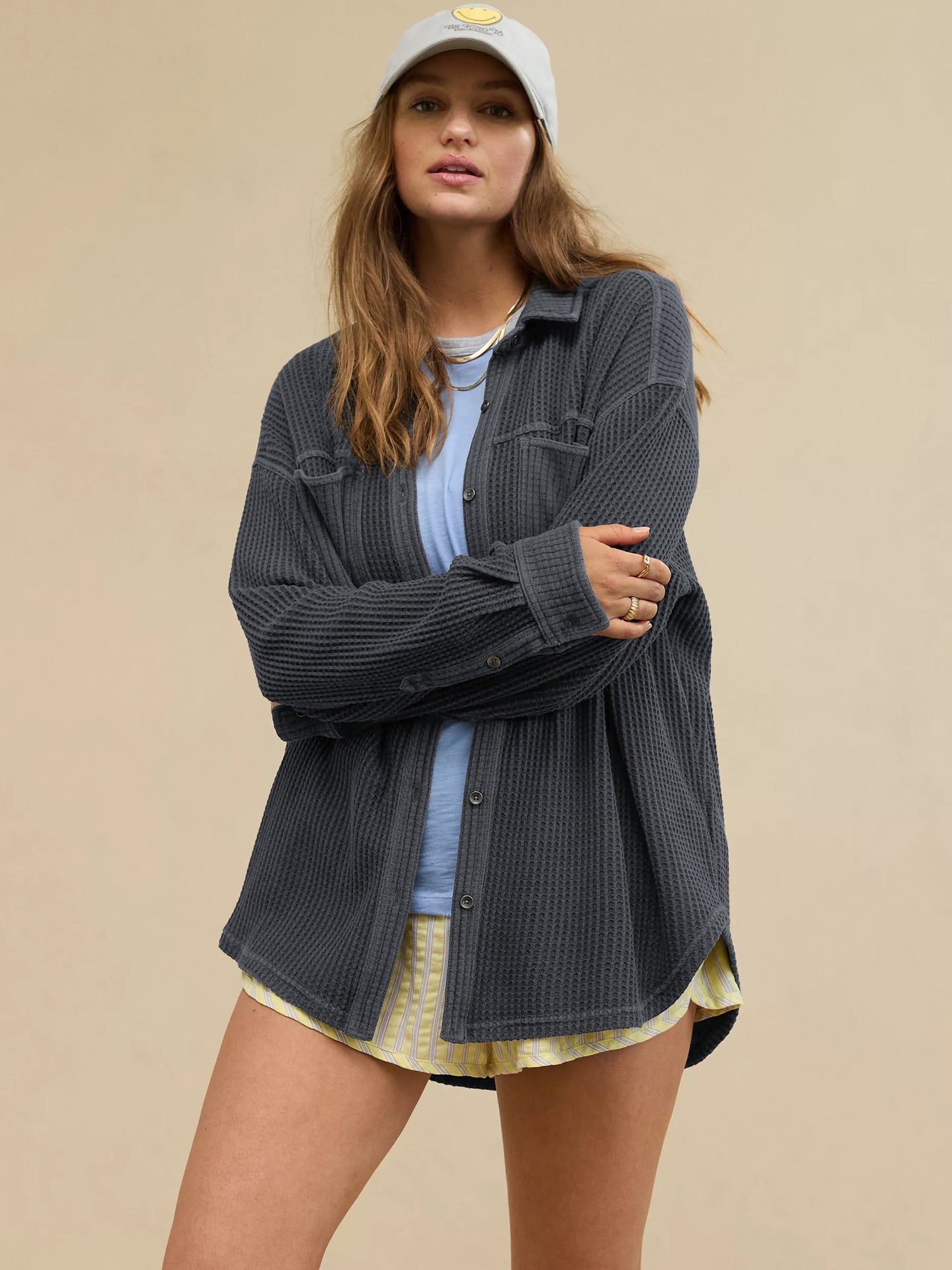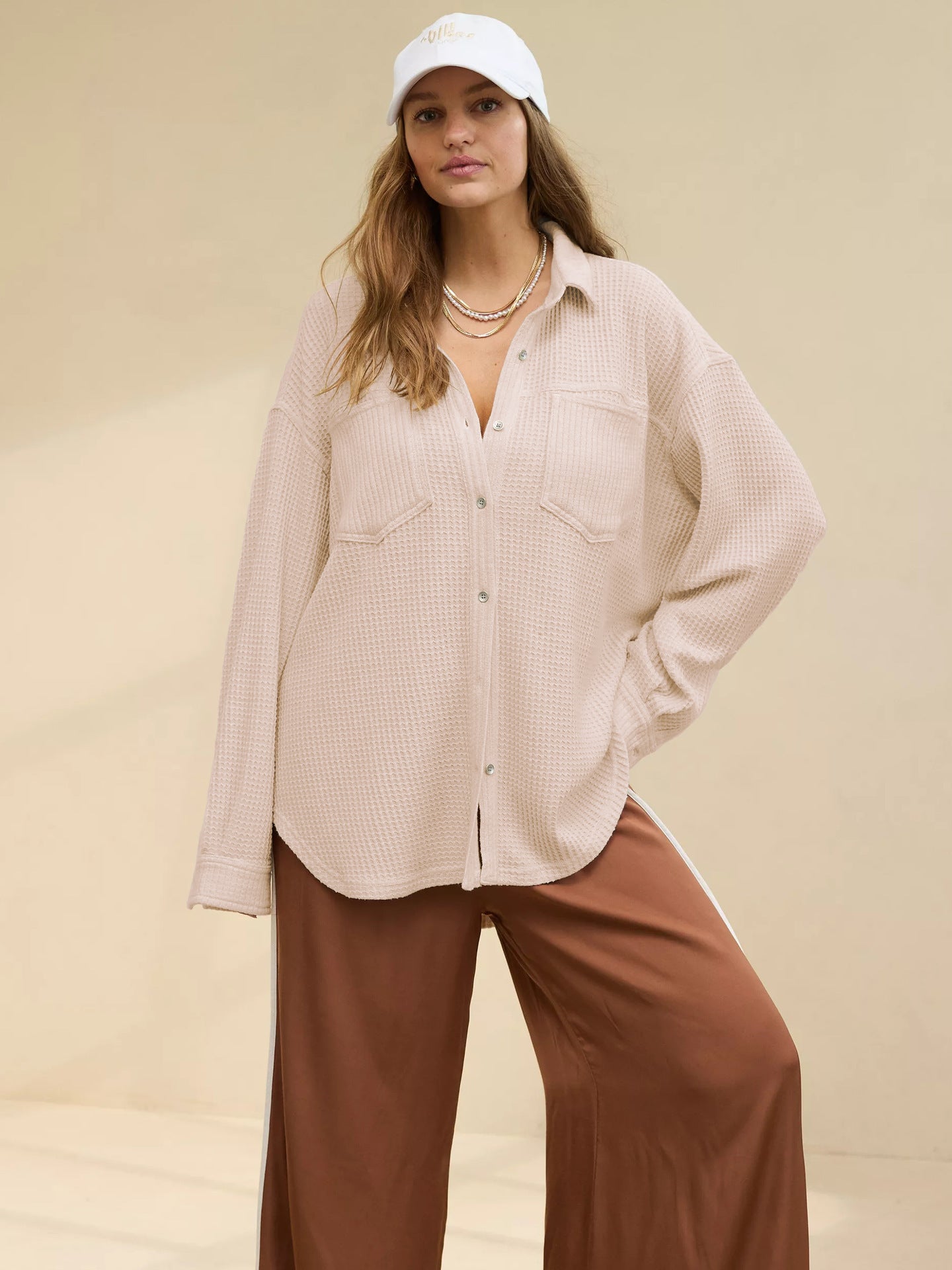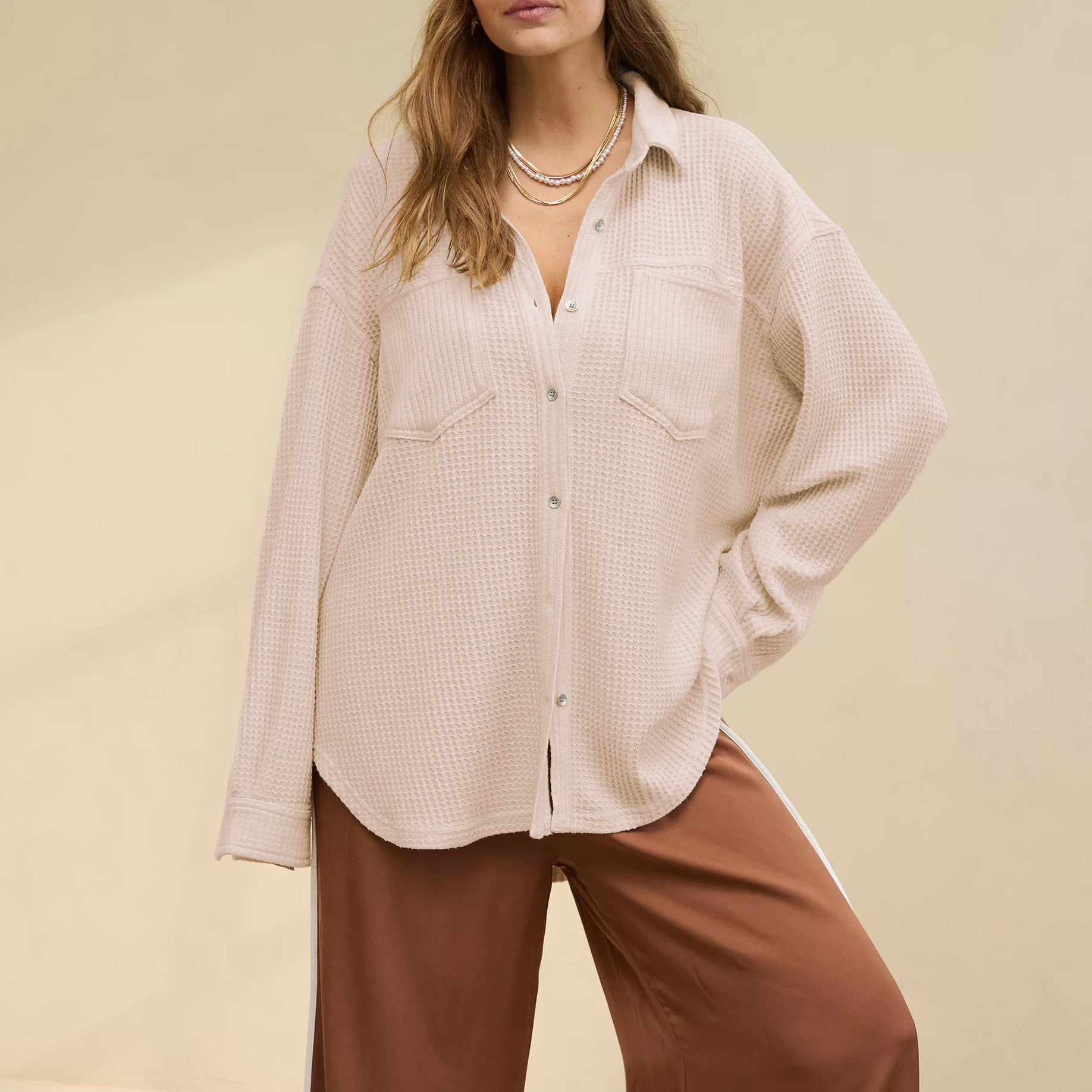 Oplev vores stilfulde dame overskjorte lavet af højkvalitets, struktureret bomuld, ideel til afslappede dage og uformelle anledninger. Med en praktisk trykknaplukning og elegante sidelæg kombinerer denne skjorte komfort med moderne design.