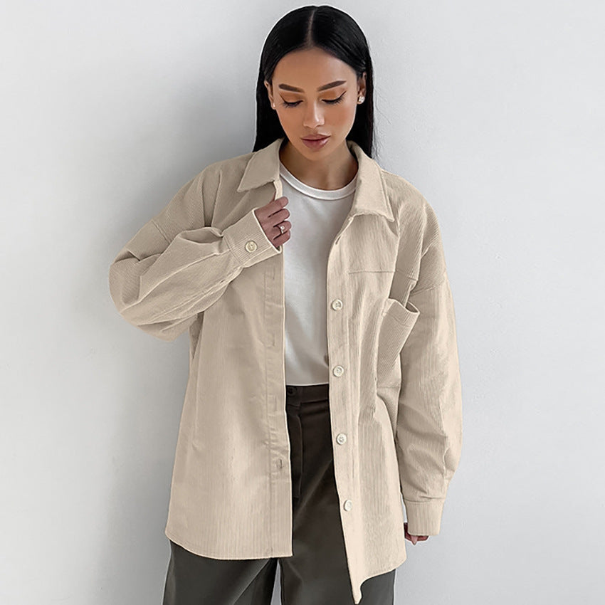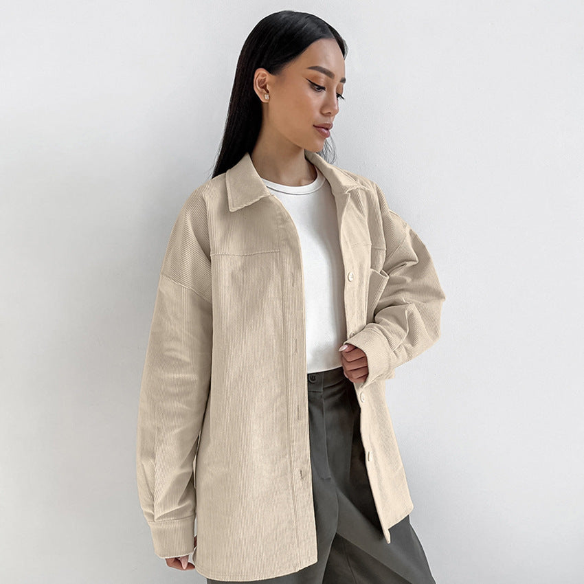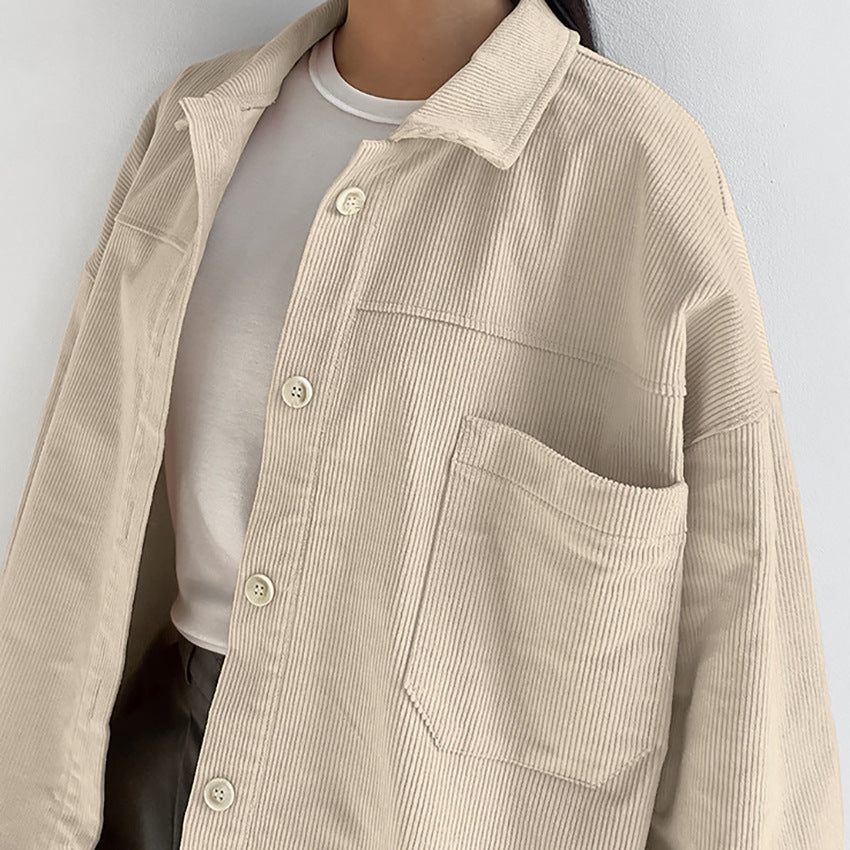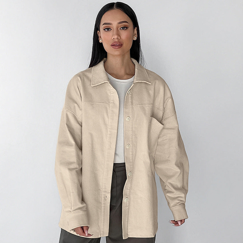 Opdag den perfekte kombination af stil og komfort med vores afslappede oversized skjortejakke i blød kord. Denne trendy jakke er ideel til det urbane hverdagsliv og kan nemt kombineres med forskellige outfits.