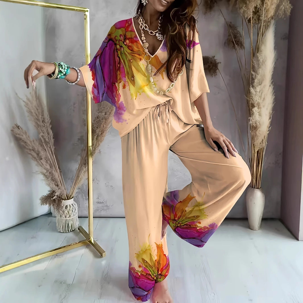 Oplev den stilfulde og komfortable dame casual buksedragter fra Stilla, som imponerer med et moderne og iøjnefaldende print. Dette sæt er perfekt til rolige dage derhjemme eller afslappede udflugter og kombinerer elegance med maksimal bærekomfort.
