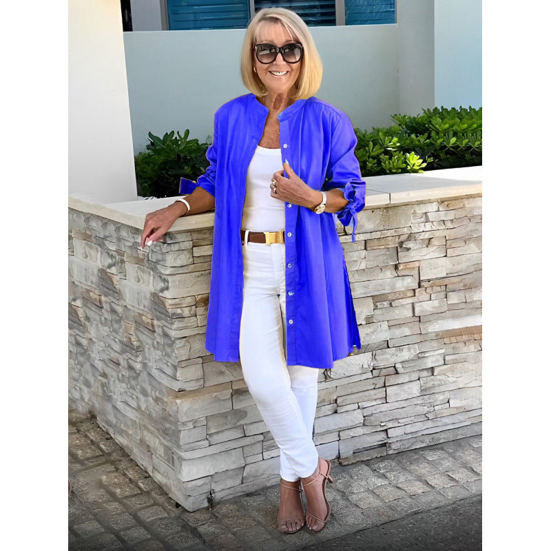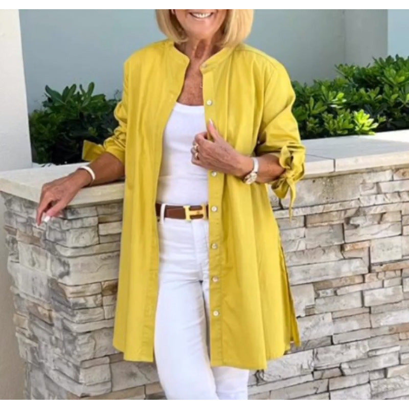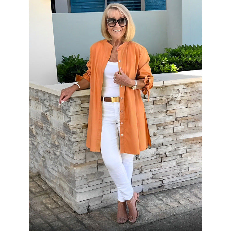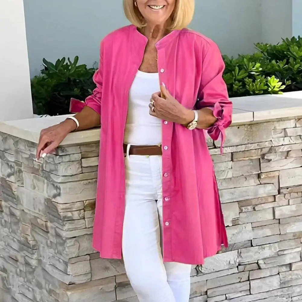 Vores damernes afslappede langjakke er den perfekte følgesven for stilbevidste kvinder, der ønsker at forene komfort og elegance. Denne alsidige jakke imponerer med sin moderne ståkrave og den praktiske knappelukning, der sikrer nem påklædning.