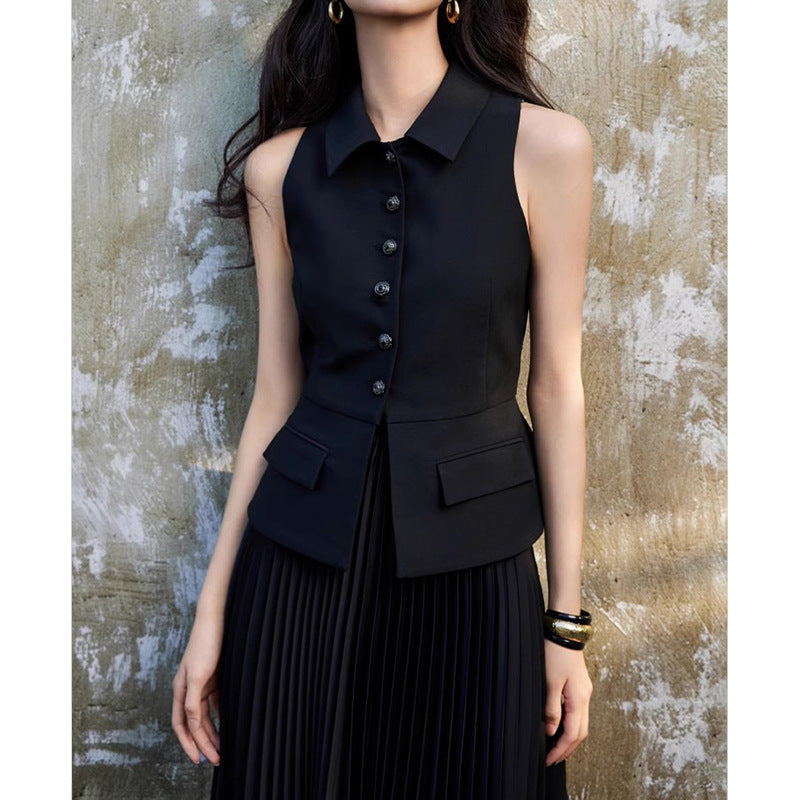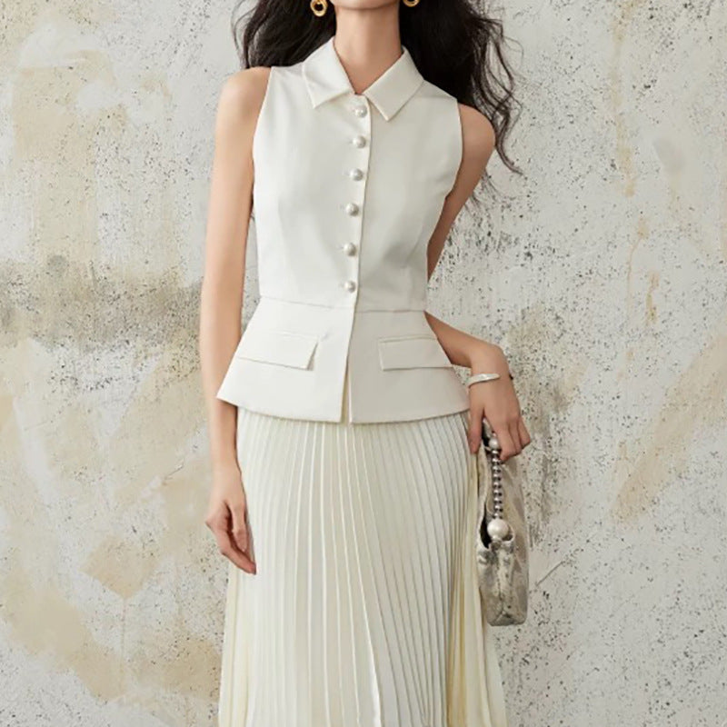 Dame ærmeløs bluser skjorte med elegant knaplukning og struktureret design Stilla