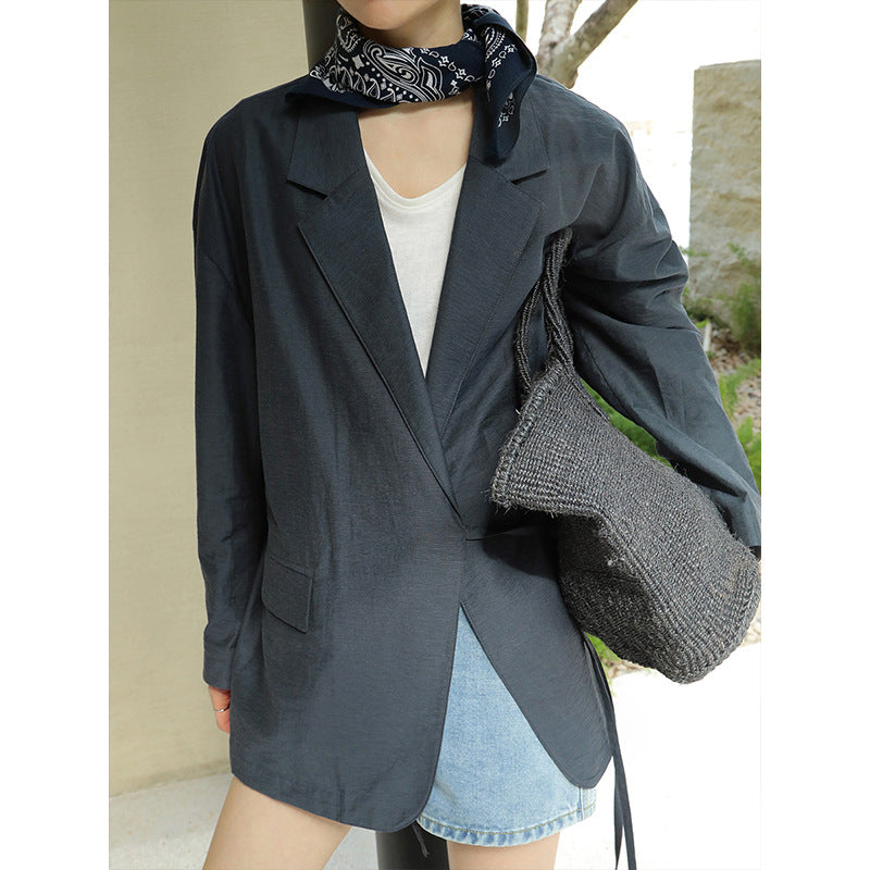 Kombinér denne blazer let med en T-shirt og jeans for et afslappet look, eller bær den over en elegant kjole til formelle anledninger. Den neutrale farve passer perfekt til enhver garderobe.