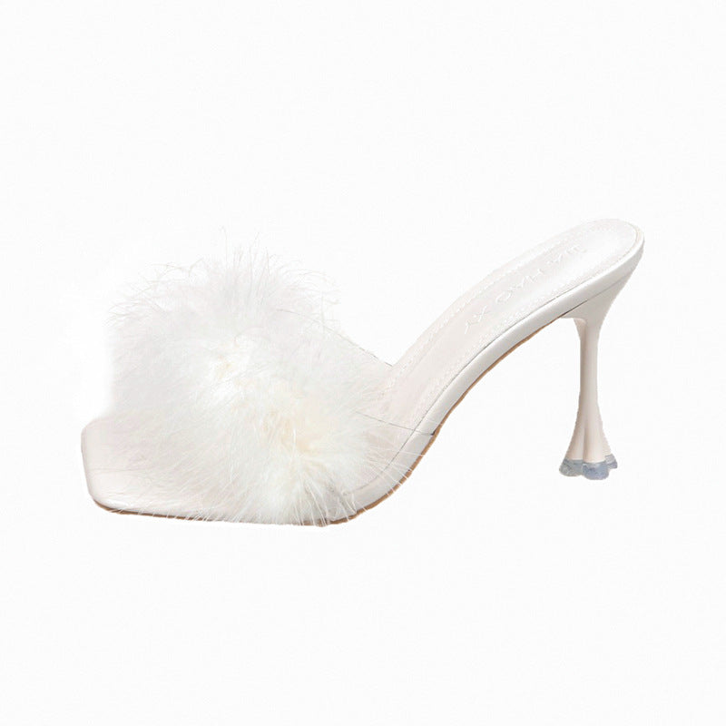 Træd ind i luksus og elegance med vores elegante open-toe højhælede slide sandaler til damer, der har eksklusive pelsdekorationer. Perfekt til særlige lejligheder eller en stilfuld aften, tilbyder disse sandaler både stil og komfort.