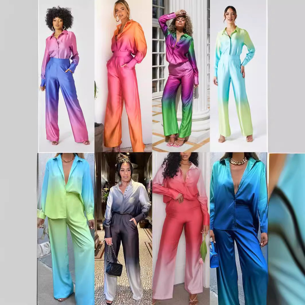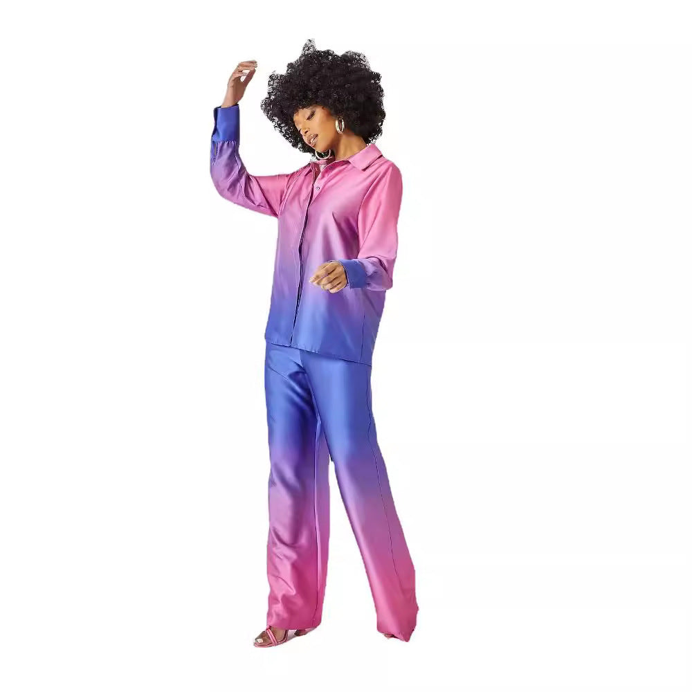 Dame silke bluser-bukser-sæt med elegant farvegradient Stilla