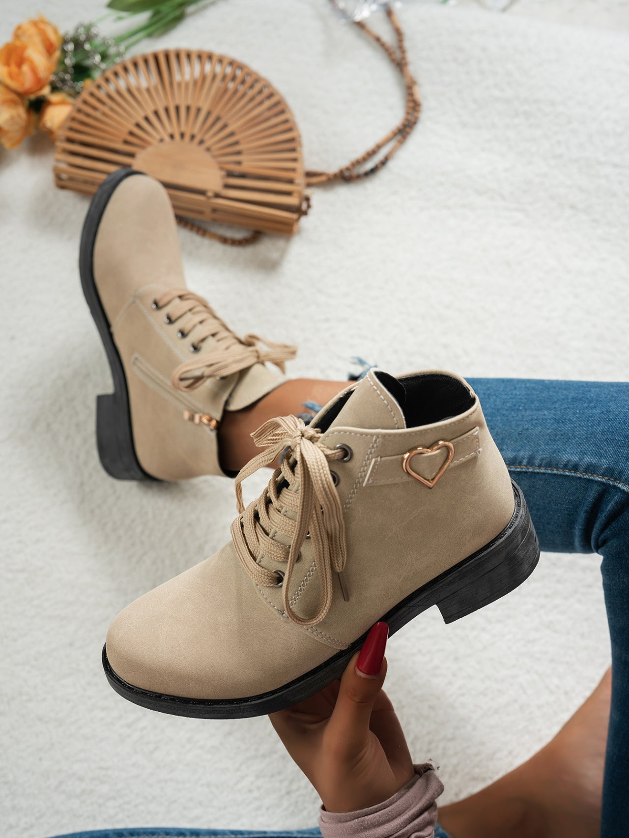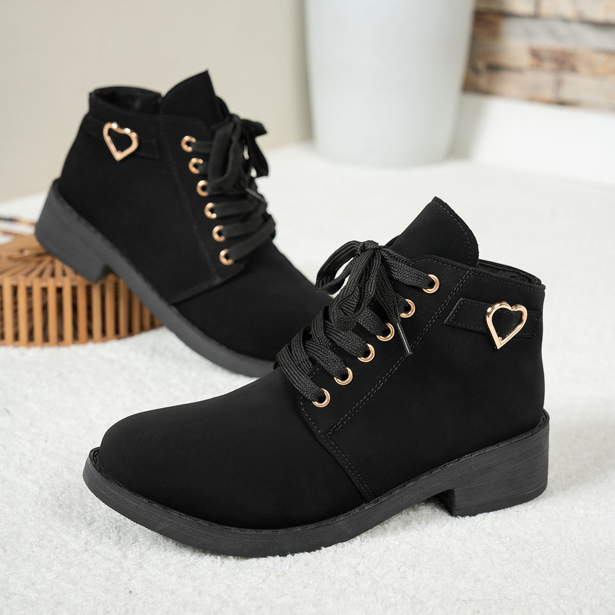 Moderne design: Med en charmerende hjerte-accent og klassisk snøring forener de elegance og trendbevidsthed.