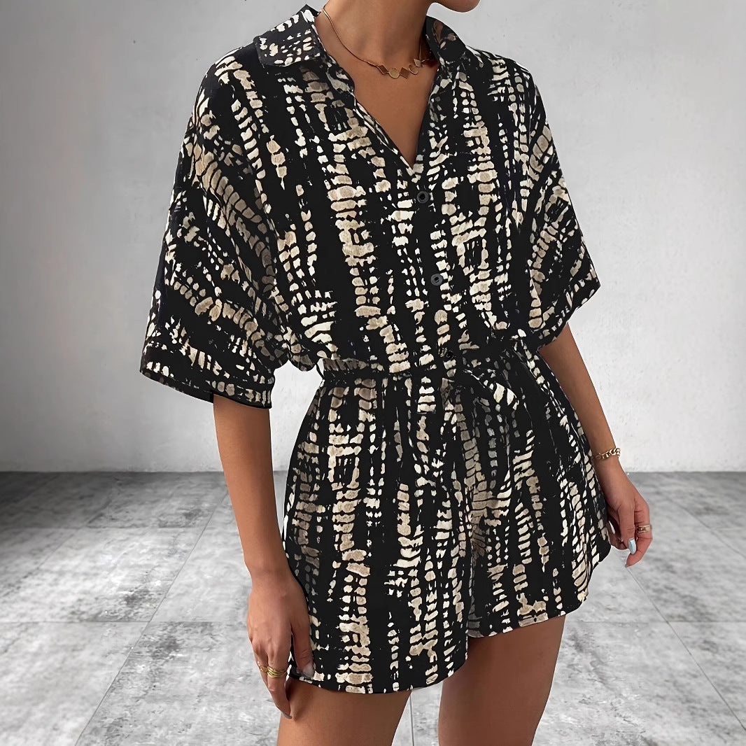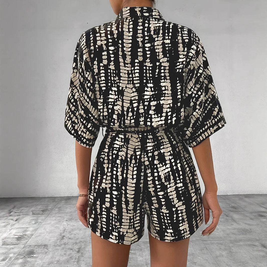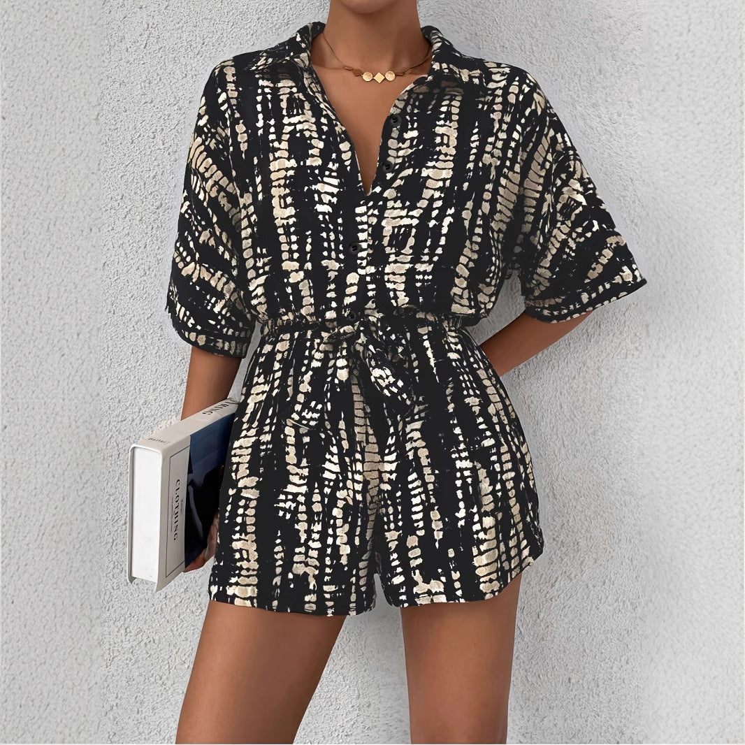 Detaljer: Skjorte med knapåbning og krave, shorts med sidelomme og bindebælte for individuel tilpasning.