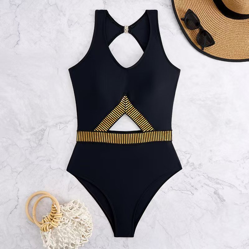 Berig din badetøjs garderobe med vores dames Cut-Out-Hals badedragt. Denne badedragt, der er designet specielt til den trendbevidste kvinde, præsenterer sig med en iøjnefaldende høj hals og smart placerede udskæringer, der fremhæver din figur perfekt og samtidig sikrer komfort og støtte.