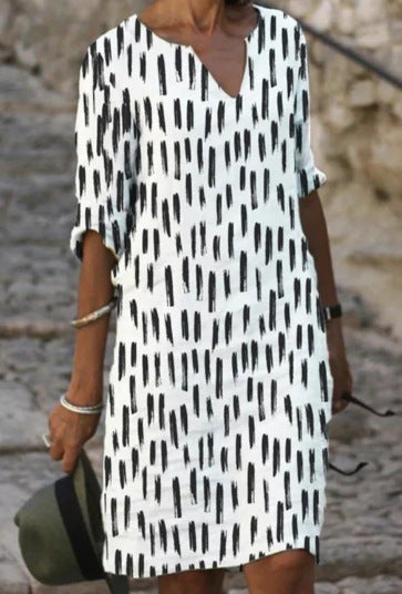 Vores dame casual kjole med grafisk print og gennemgående knaplukning er det perfekte valg for stilbevidste kvinder, der ønsker at kombinere komfort og mode. Fremstillet af høj kvalitet, let materiale, tilbyder denne kjole en behagelig åndbarhed, ideel til varme sommerdage.